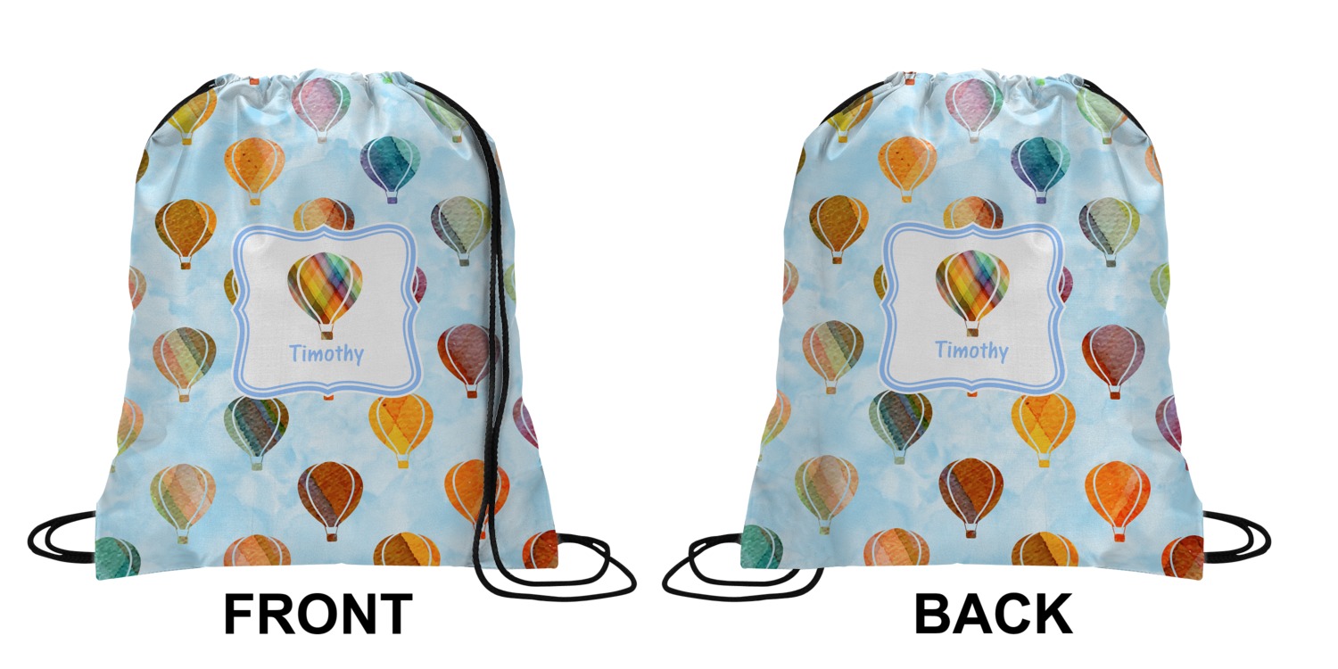Our drawstring backpacks are available in 3 sizes. Small is approx 15in tall by 13in wide. Medium is approximately 18in tall by 17in wide. Large is 23in tall and 19in wide.