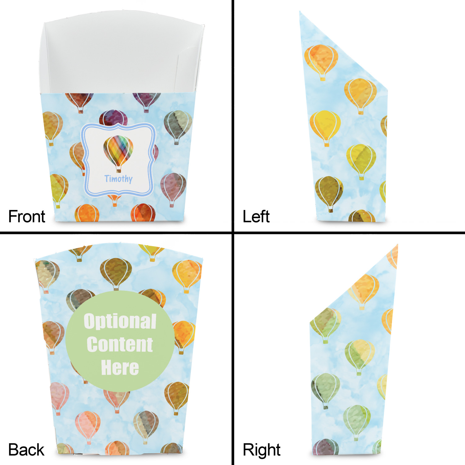 These favor boxes are printed in full color on quality cardstock - so coordinating the french fry favor boxes to match your event's themes or colors should be a breeze. You can upload your own design including artwork, logos or photos