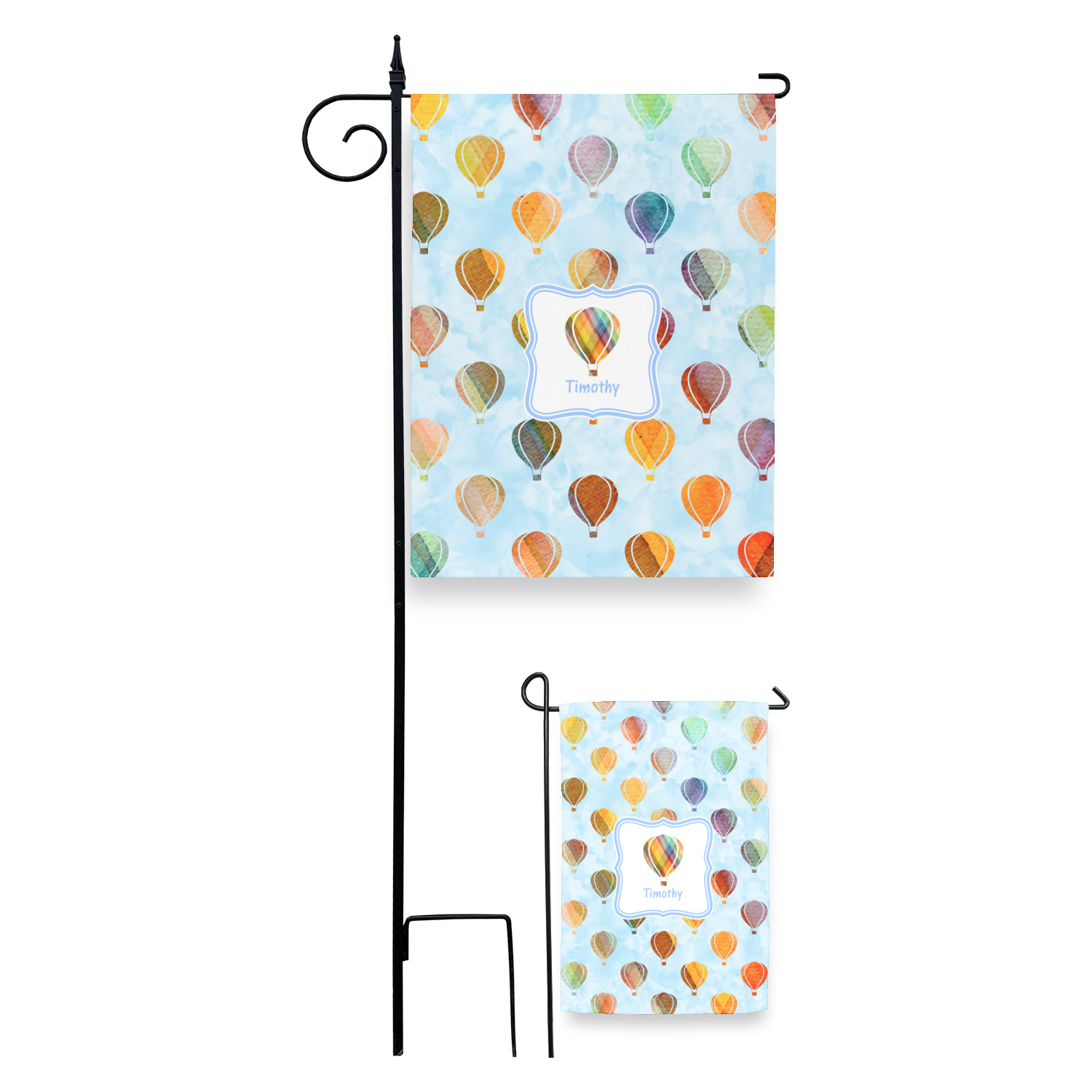 These custom garden flags are made of a durable, double-ply, polyester weave, allowing them to withstand the elements year round. The small flags measure at approximately 12 by 18 inches. The large flags measure out to 28 by 37 inches. You can order these decorative flags with your customization printed on the front only, or the front and back.