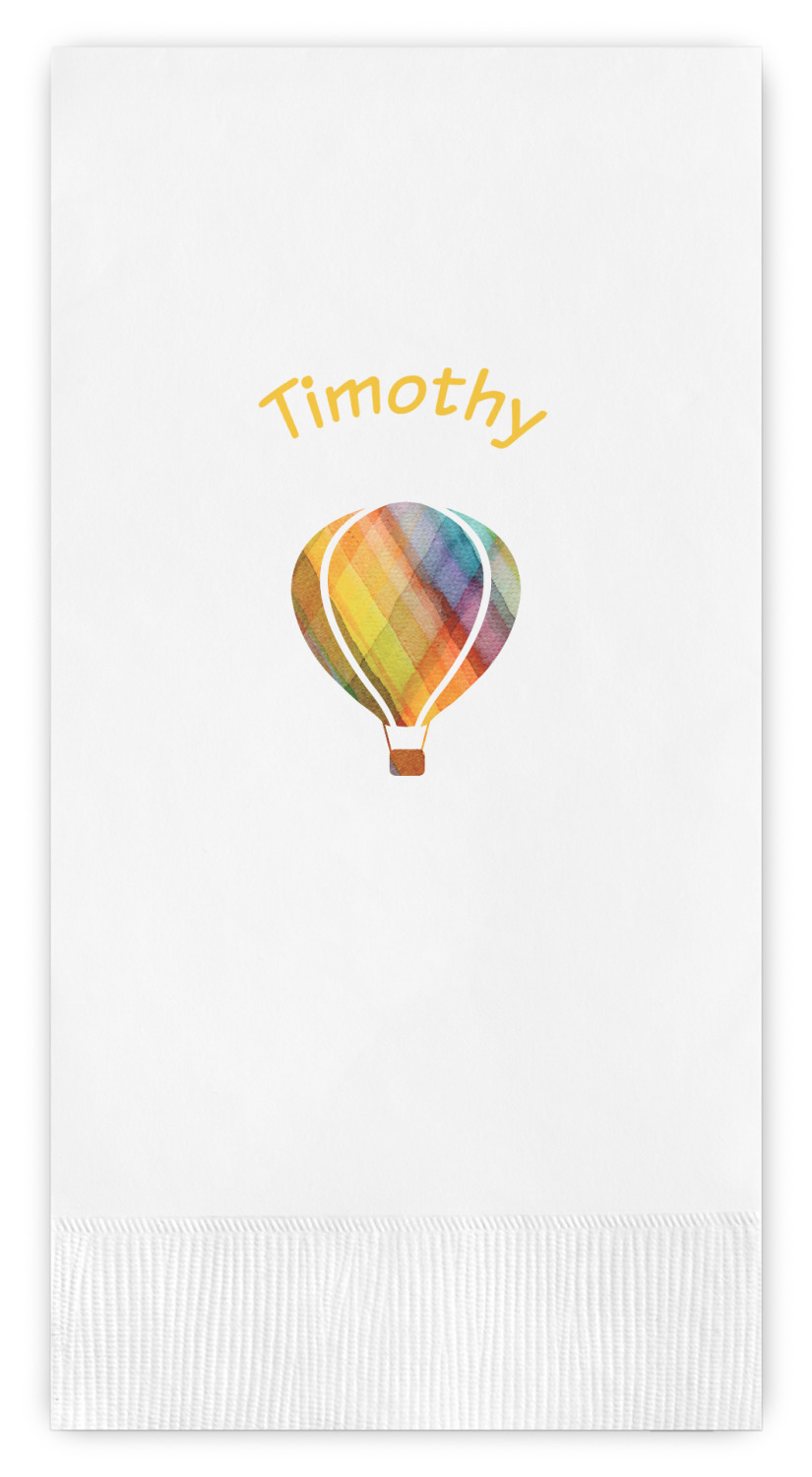 We chose to personalize it with a decorative square label and our graphics & text style. We chose to use a hot air balloon as our graphic from our transportation collection and used a name for personalization. We chose baby blue for our color to coordinate with the sky.