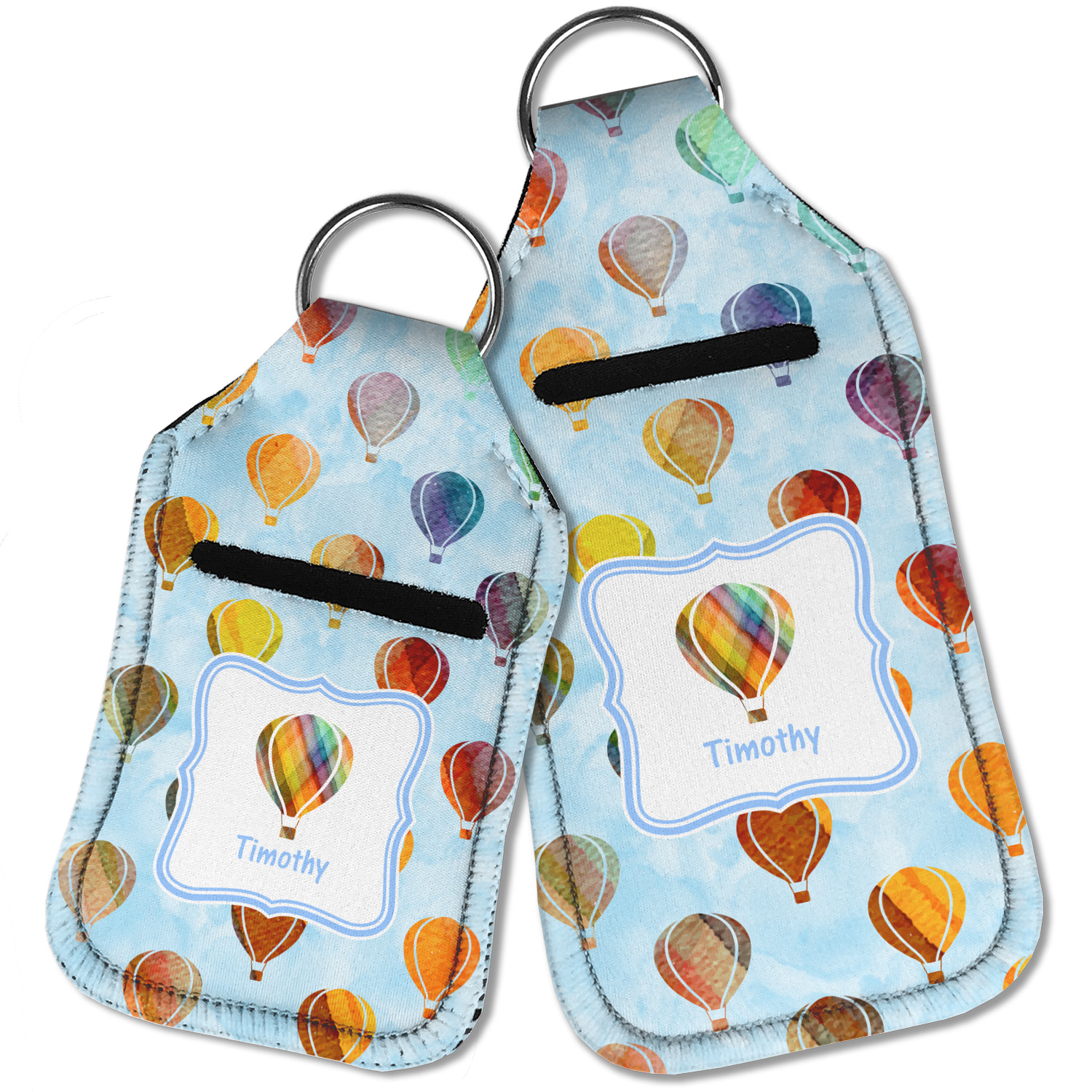 Each hand sanitizer holder comes with its own empty travel-sized, refillable hand sanitizer sure to fit snug in your customized sanitizer case! Our hand sanitizer cases are a durable, yet soft neoprene material sure to last any daily activities or travel agenda. Customize and personalize a hand sanitizer bottle holder with one of our two sizes - small (4.25" x 2.25") or large (5.5" x 2.5"). Each travel sanitizer holder comes with a keyring for attachment on bags, keys, or more!