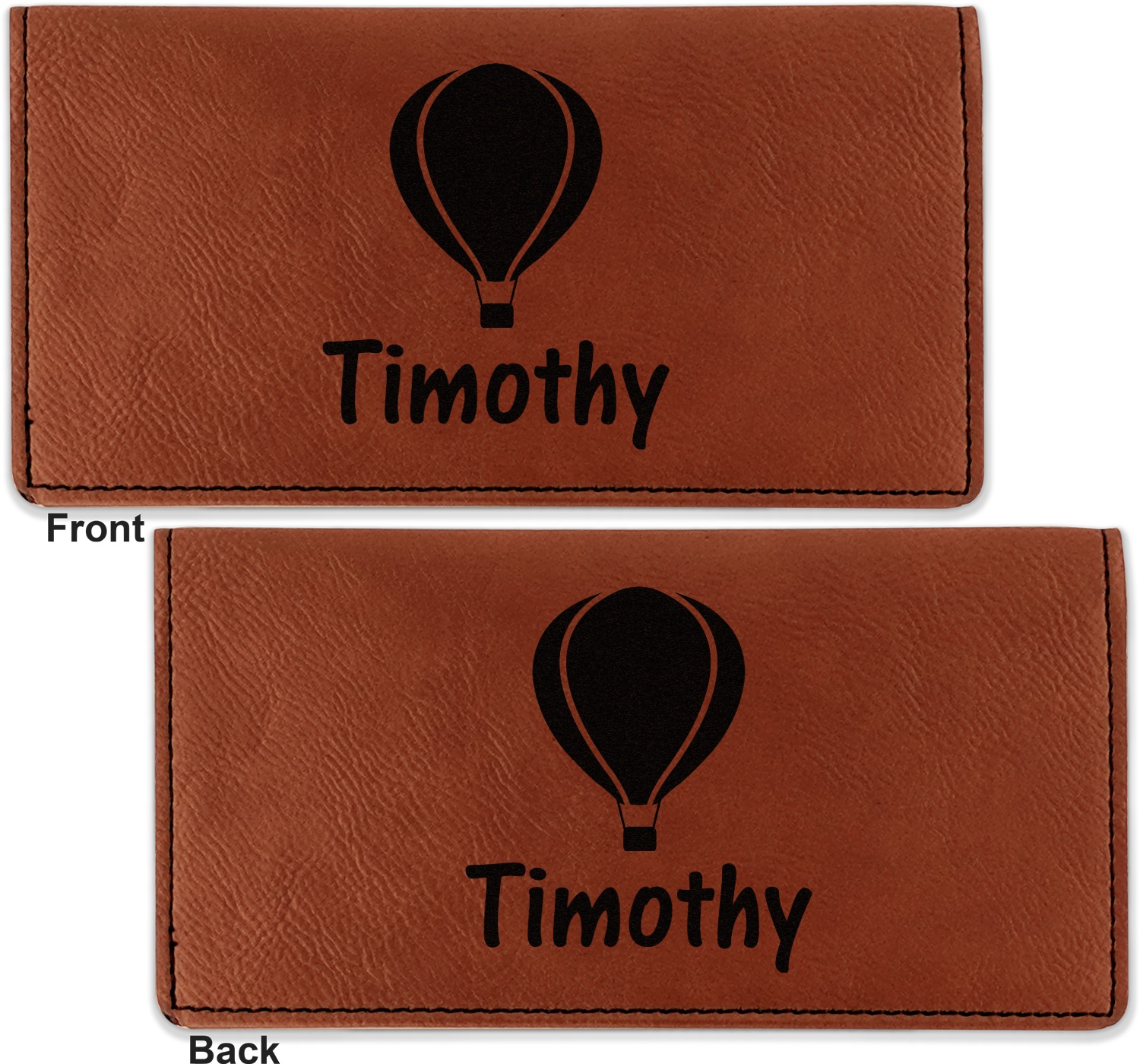 Go into our design center to start personalizing. Your checkbook cover will be laser engraved, making the graphic or text a black color. Choose a fun saying, monogram, or font to go on your checkbook cover. You have the opportunity to do it double or single sided.
