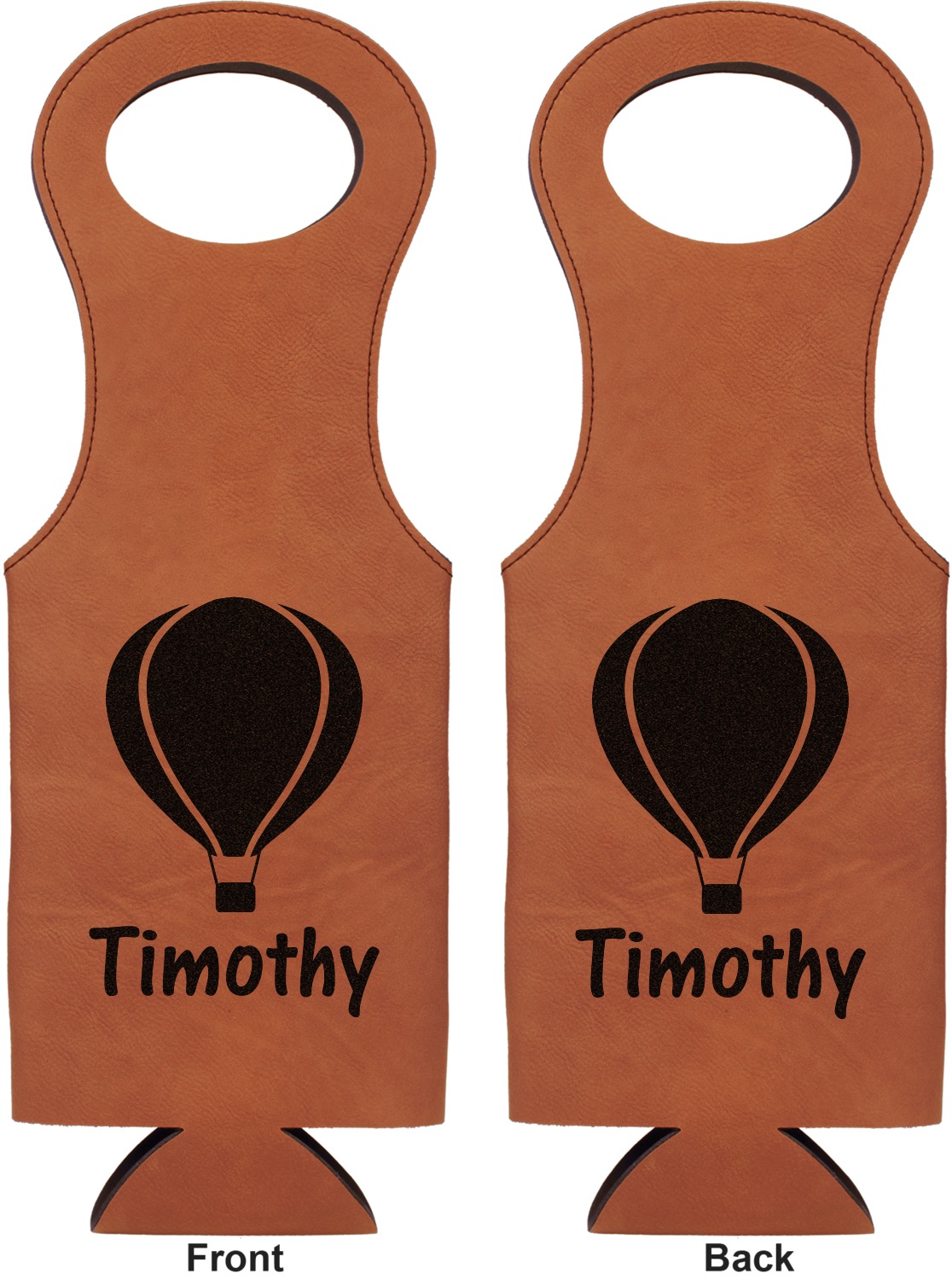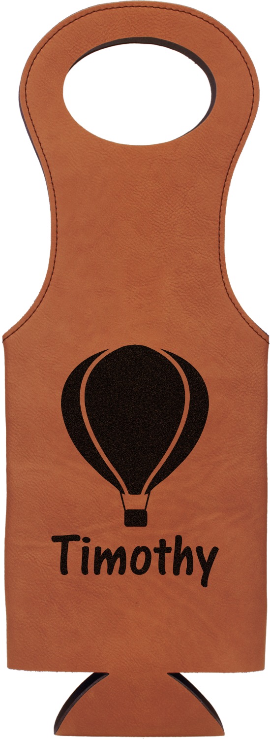 This wine carrier is made from a stunning leatherette, in a cognac-brown color. Strong, black stitching lines the sides of your wine bottle bag and provides extra durability. The interior is lined with a padded, black material to allow for a snug fit once your bottle is placed inside. At the top of this wine gift bag, you'll find two oval shaped handles that elegantly complements the rest of the bag's style. We provide you with the option of laser-engraving the front, or the front and back of your new personalized wine bag!