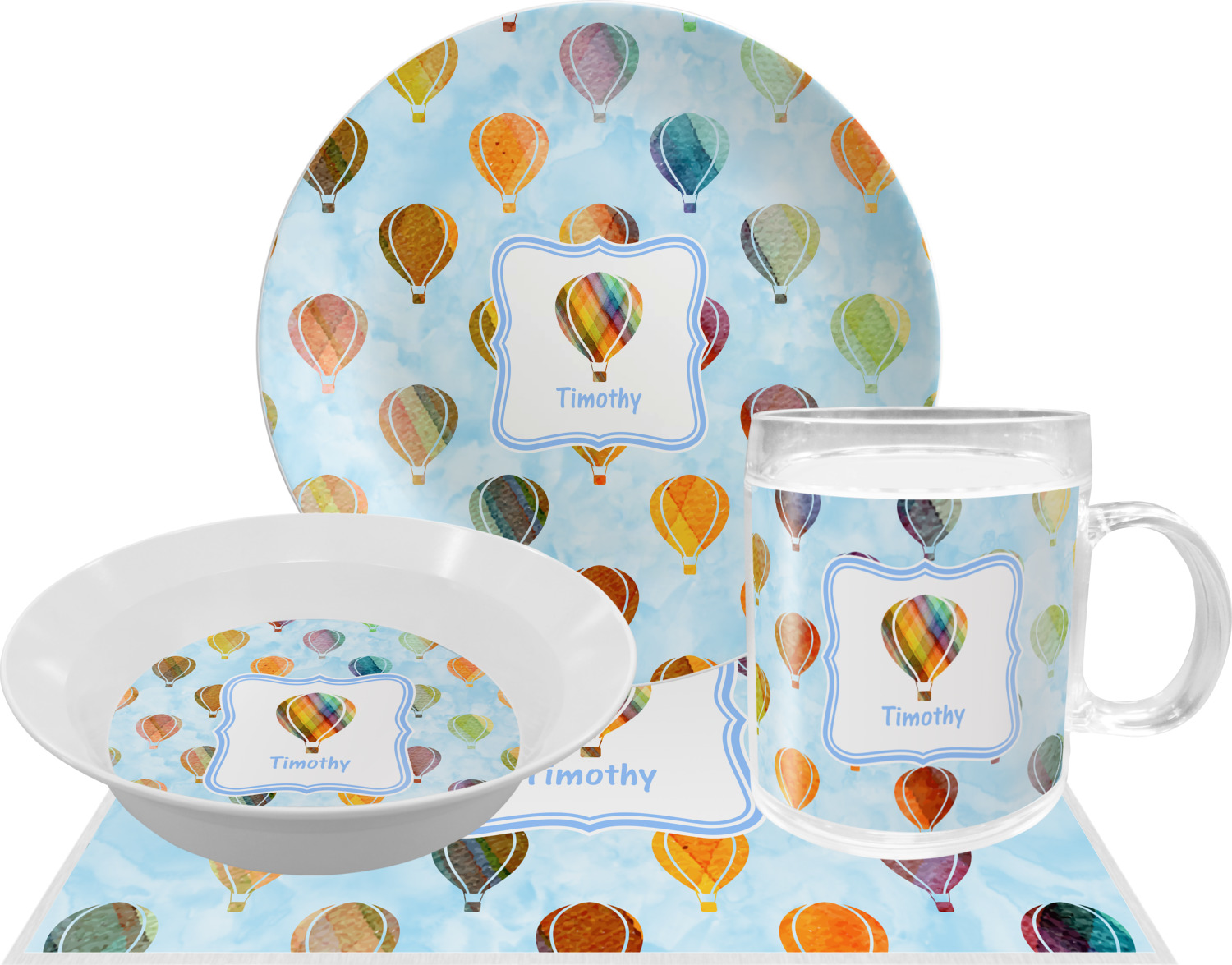 We chose to personalize it with a decorative square label and our graphics & text style. We chose to use a hot air balloon as our graphic from our transportation collection and used a name for personalization. We chose baby blue for our color to coordinate with the sky.