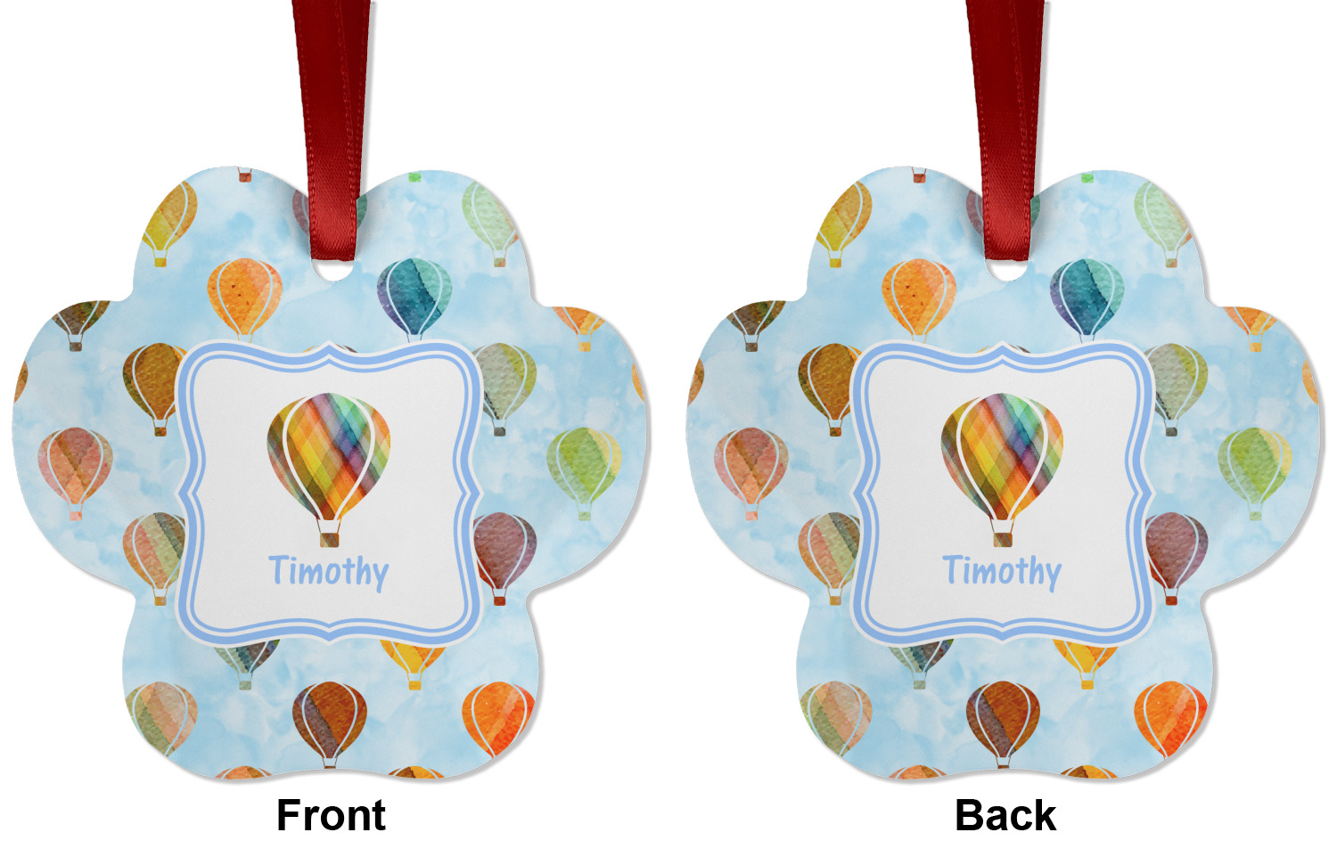 We chose to personalize it with a decorative square label and our graphics & text style. We chose to use a hot air balloon as our graphic from our transportation collection and used a name for personalization. We chose baby blue for our color to coordinate with the sky.