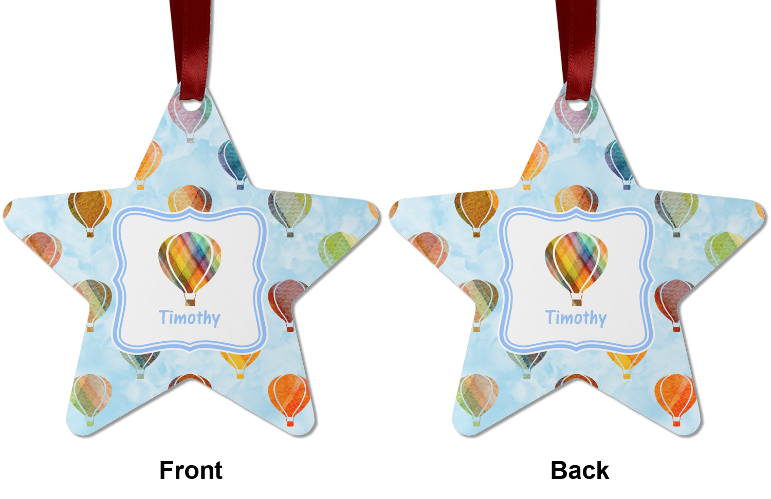 We chose to personalize it with a decorative square label and our graphics & text style. We chose to use a hot air balloon as our graphic from our transportation collection and used a name for personalization. We chose baby blue for our color to coordinate with the sky.