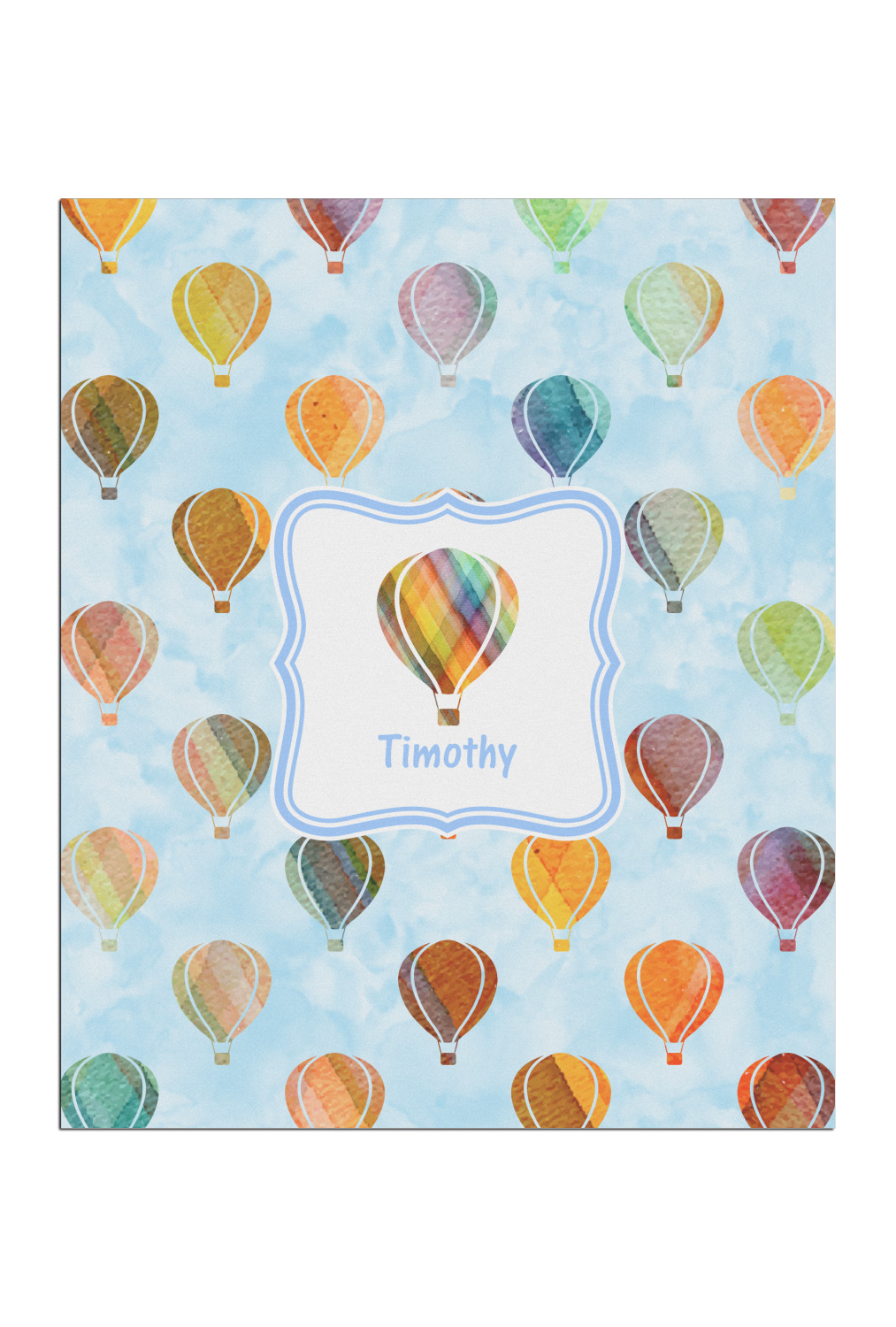 We chose to personalize it with a decorative square label and our graphics & text style. We chose to use a hot air balloon as our graphic from our transportation collection and used a name for personalization. We chose baby blue for our color to coordinate with the sky.