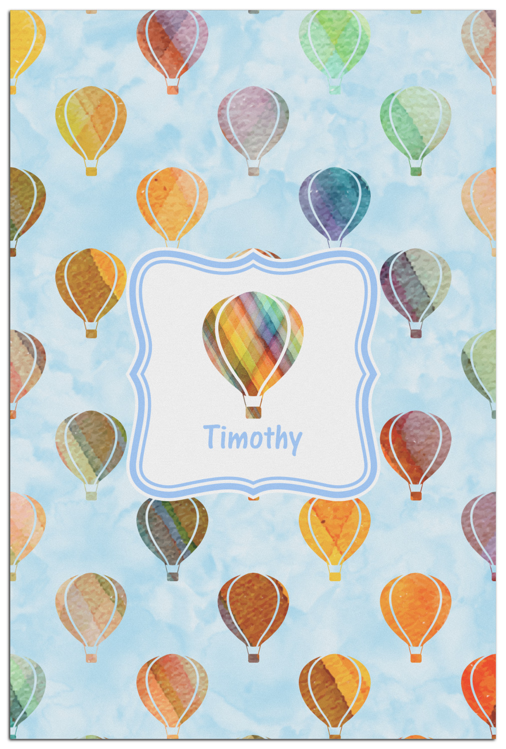 We chose to personalize it with a decorative square label and our graphics & text style. We chose to use a hot air balloon as our graphic from our transportation collection and used a name for personalization. We chose baby blue for our color to coordinate with the sky.