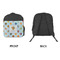 The backpack is a small size perfect for toddlers up to Kindergarten age. The zipper main pouch can hold most of their items and they have one side pocket with a flap to close it and the other side has a mesh pocket perfect for a water bottle. The outside has a customizable flap with a smaller pouch to hold more items. The straps are adjustable to fit your toddlers shoulders and they have a loop on top for hanging for storage.