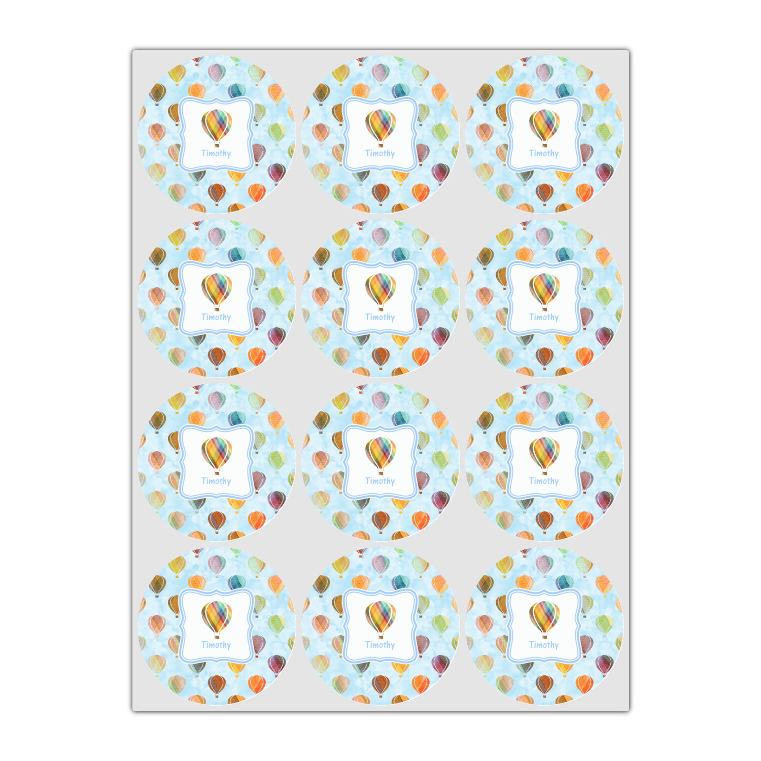 We chose to personalize it with a decorative square label and our graphics & text style. We chose to use a hot air balloon as our graphic from our transportation collection and used a name for personalization. We chose baby blue for our color to coordinate with the sky.