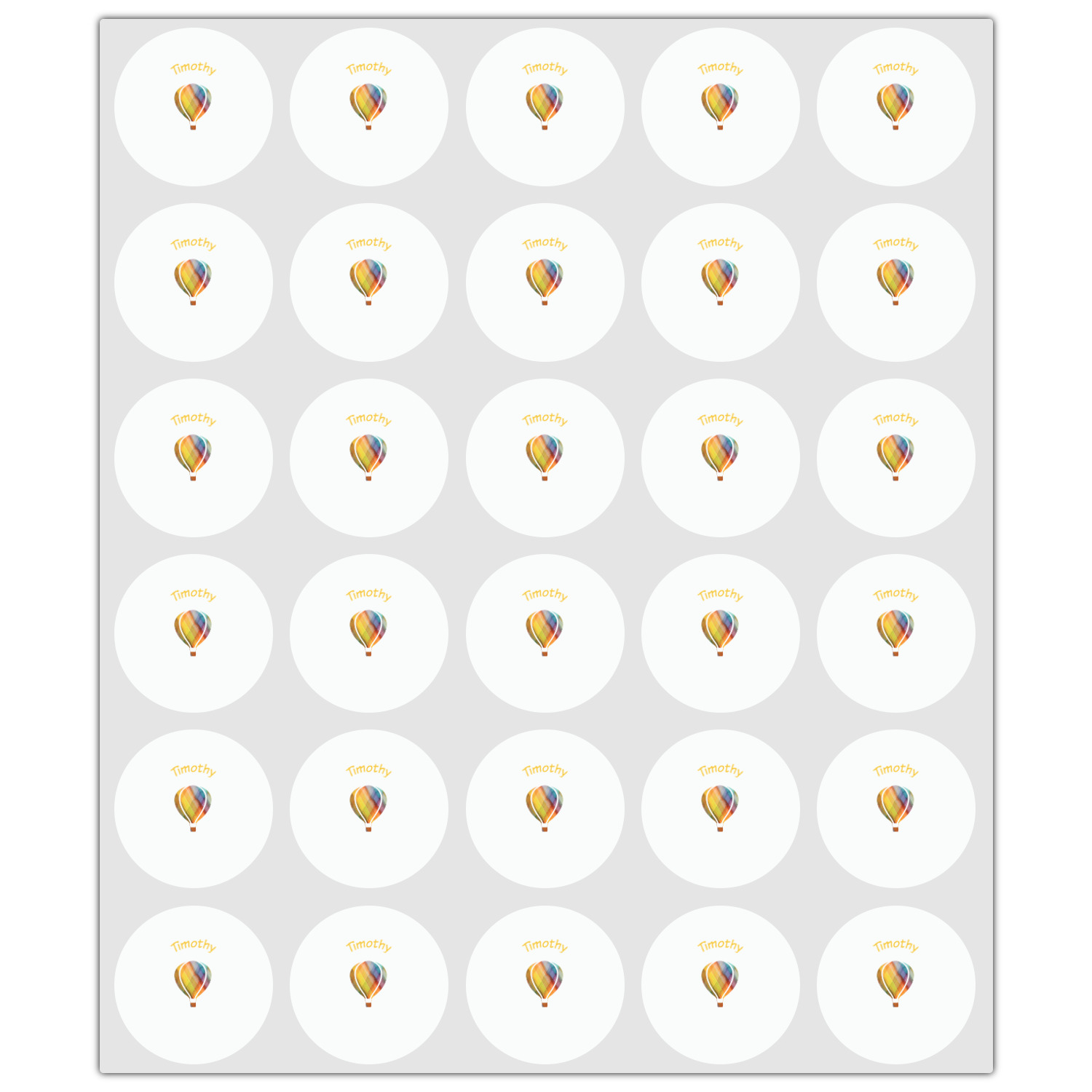 We chose to personalize it with a decorative square label and our graphics & text style. We chose to use a hot air balloon as our graphic from our transportation collection and used a name for personalization. We chose baby blue for our color to coordinate with the sky.