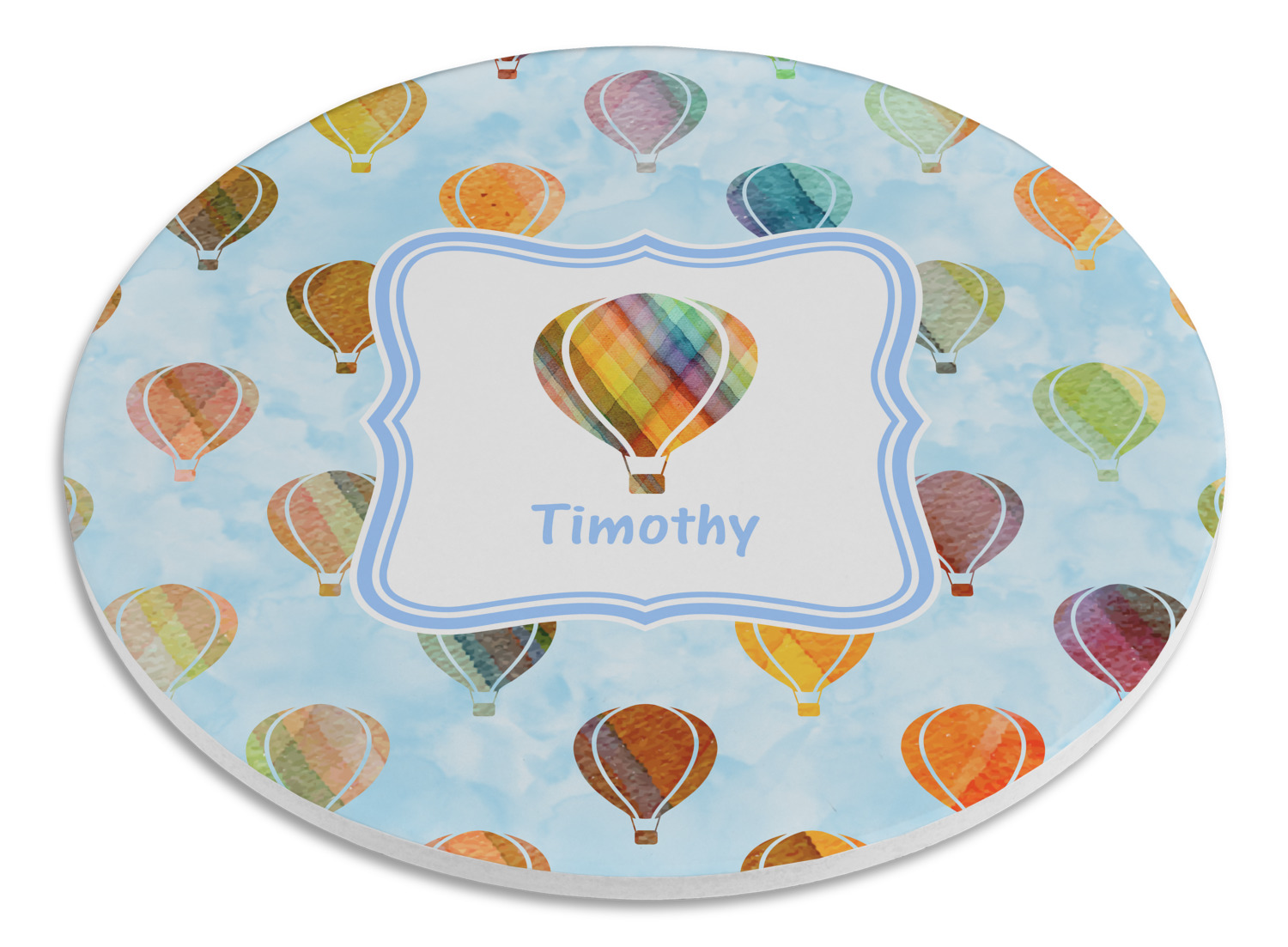 We chose to personalize it with a decorative square label and our graphics & text style. We chose to use a hot air balloon as our graphic from our transportation collection and used a name for personalization. We chose baby blue for our color to coordinate with the sky.