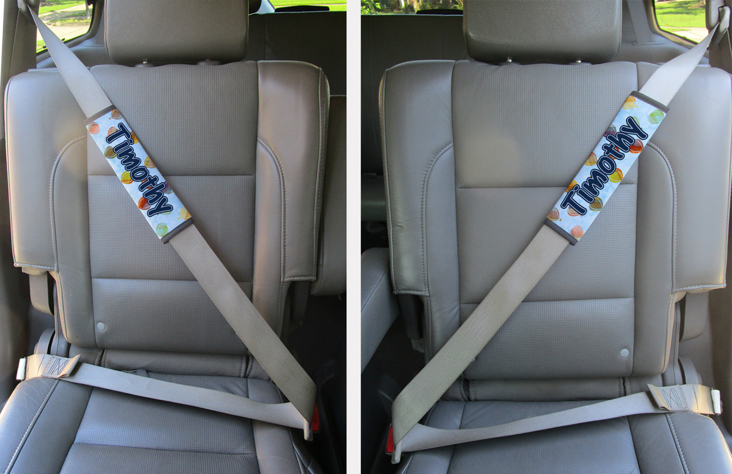 Made from neoprene, our seat belt strap covers wrap around the belt itself and have a Velcro tab for easy attachment and closure. The belt's edges are trimmed with a black polyester for a secure finish. Each cover is 9.5 by 7 inches when open and 9.5 by 2.5 inches when closed. We print your personalized design on the face of the seat belt pad.