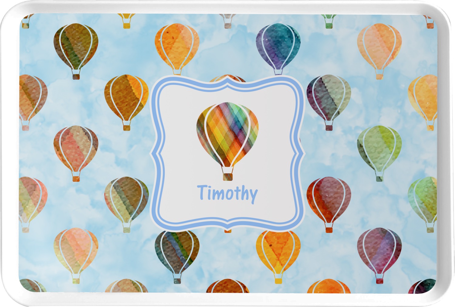 We chose to personalize it with a decorative square label and our graphics & text style. We chose to use a hot air balloon as our graphic from our transportation collection and used a name for personalization. We chose baby blue for our color to coordinate with the sky.