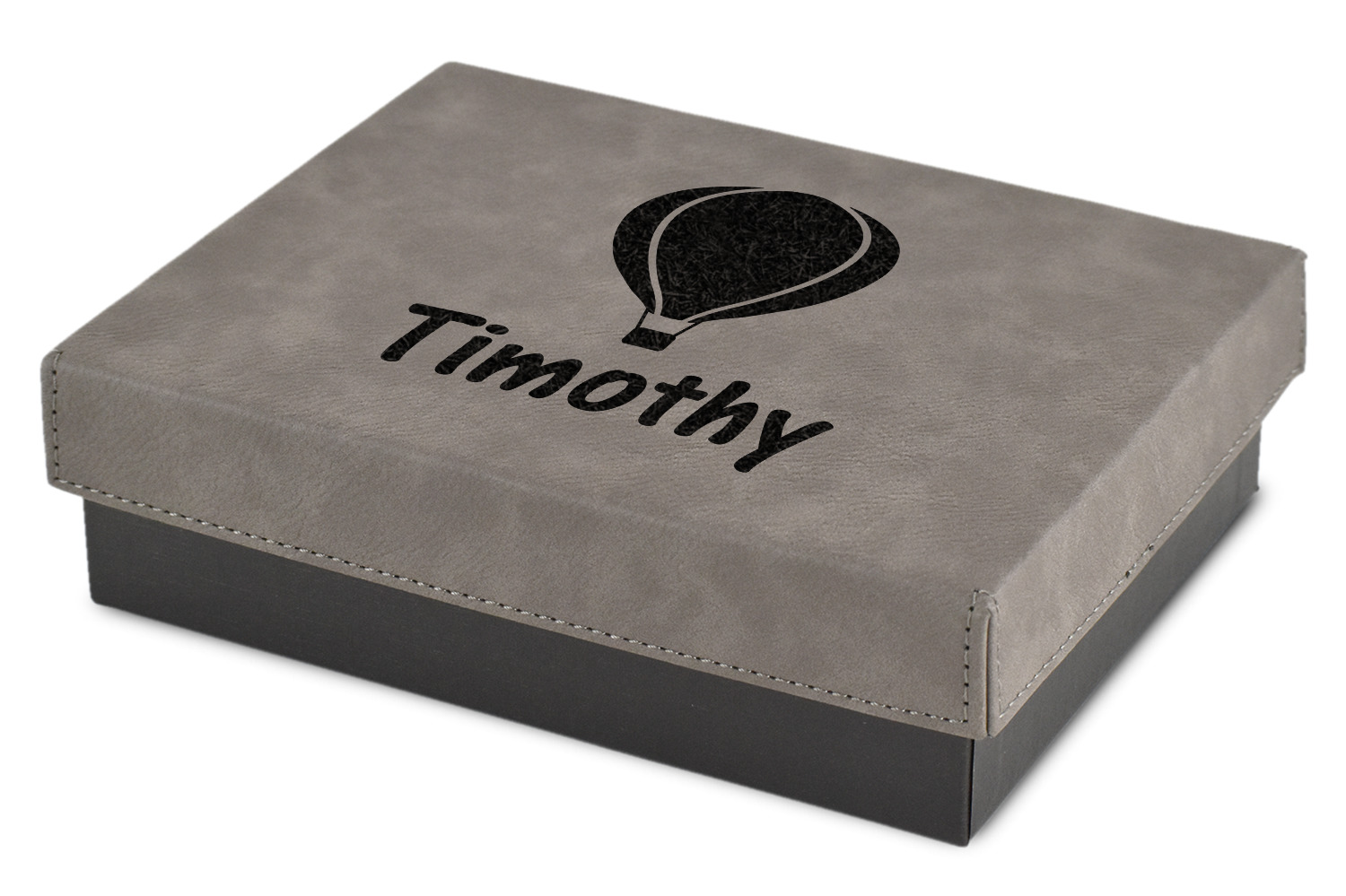 These gift boxes are available in 3 different sizes to accommodate various sized gifts. Available in gray as a neutral color for any occasion as well as to showcase your design boldly. Engraved with a laser this high quality paper board and faux leather gift box is unique and makes any gift stand out.