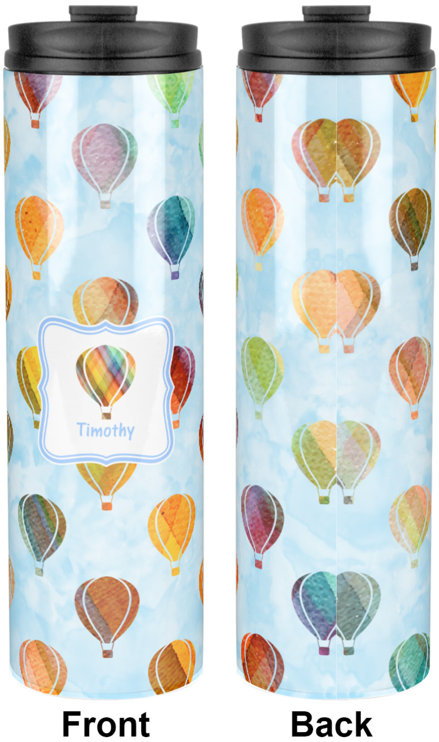 We chose to personalize it with a decorative square label and our graphics & text style. We chose to use a hot air balloon as our graphic from our transportation collection and used a name for personalization. We chose baby blue for our color to coordinate with the sky.