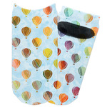 This watercolor hot air balloons design is simply adorable. The design background is the blue sky done in watercolor. The hot air balloons are also done in watercolors; in shades of oranges, reds, greens & teals.