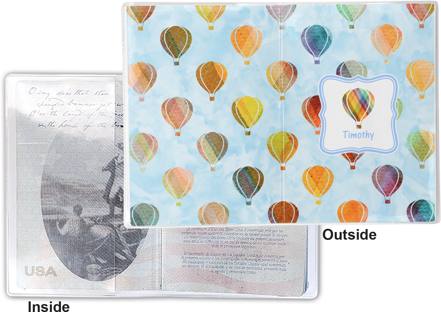 This cover is made of a sturdy clear vinyl with a personalized vinyl insert inside. There is a large and a small pocket on either side to hold the covers of your passport easily and firmly. The passport holder is approximately 7.5" x 5.25", the perfect size to snugly fit your passport. This slim cover is the perfect way to protect your passport without being one more bulky item you have to carry.