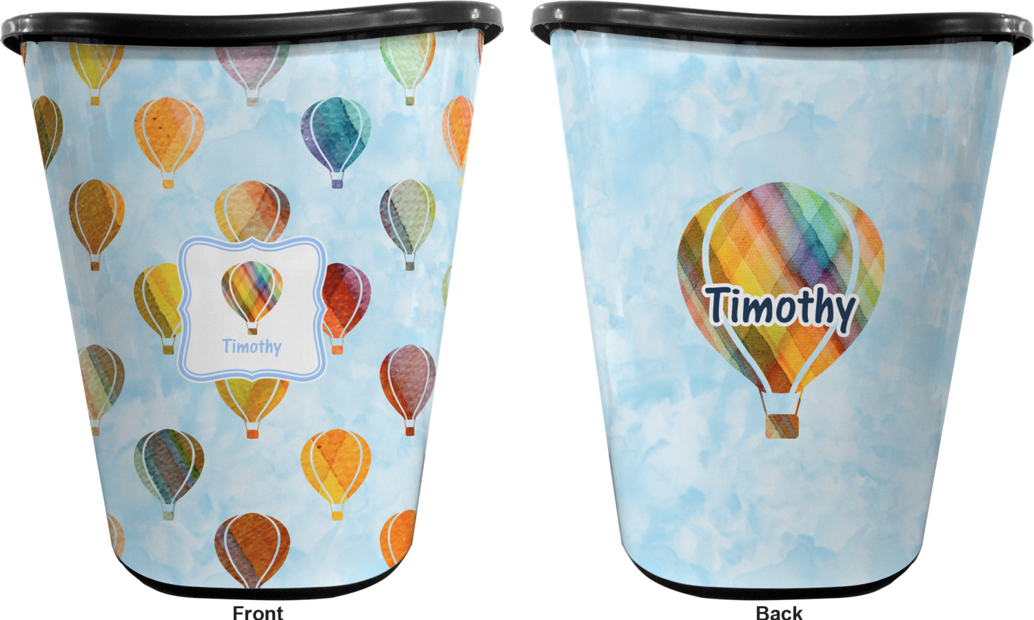 You can choose to purchase these decorative wastebaskets in either a white or a black color that will show on the base and the upper rim. Your customization is printed on a high-gloss, fine-quality vinyl adhesive, and you can choose to either have this adhesive applied to one side only or to both sides. As such, this plastic wastebasket can be single-sided or double-sided, depending on your creative vision. Your customization is printed using durable inks, making the design waterproof and resistant to fading over time.