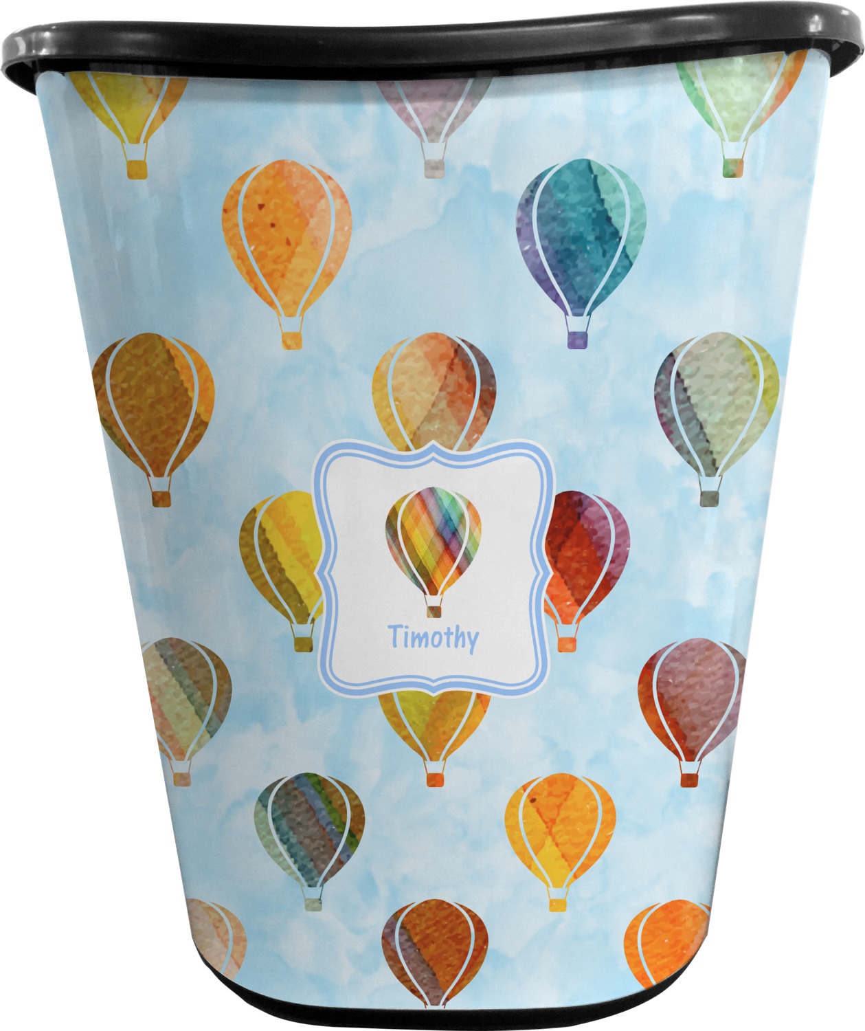 We chose to personalize it with a decorative square label and our graphics & text style. We chose to use a hot air balloon as our graphic from our transportation collection and used a name for personalization. We chose baby blue for our color to coordinate with the sky.