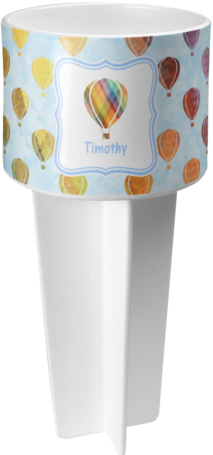 This cup holder has a large stake at its bottom that anchors it to the sand or ground below, while the cup holder rests above the stake. The entire drink holder is made of durable plastic and displays your customization around the cup holder portion. We sell these personalized beach spikers in two different colors: black and white.