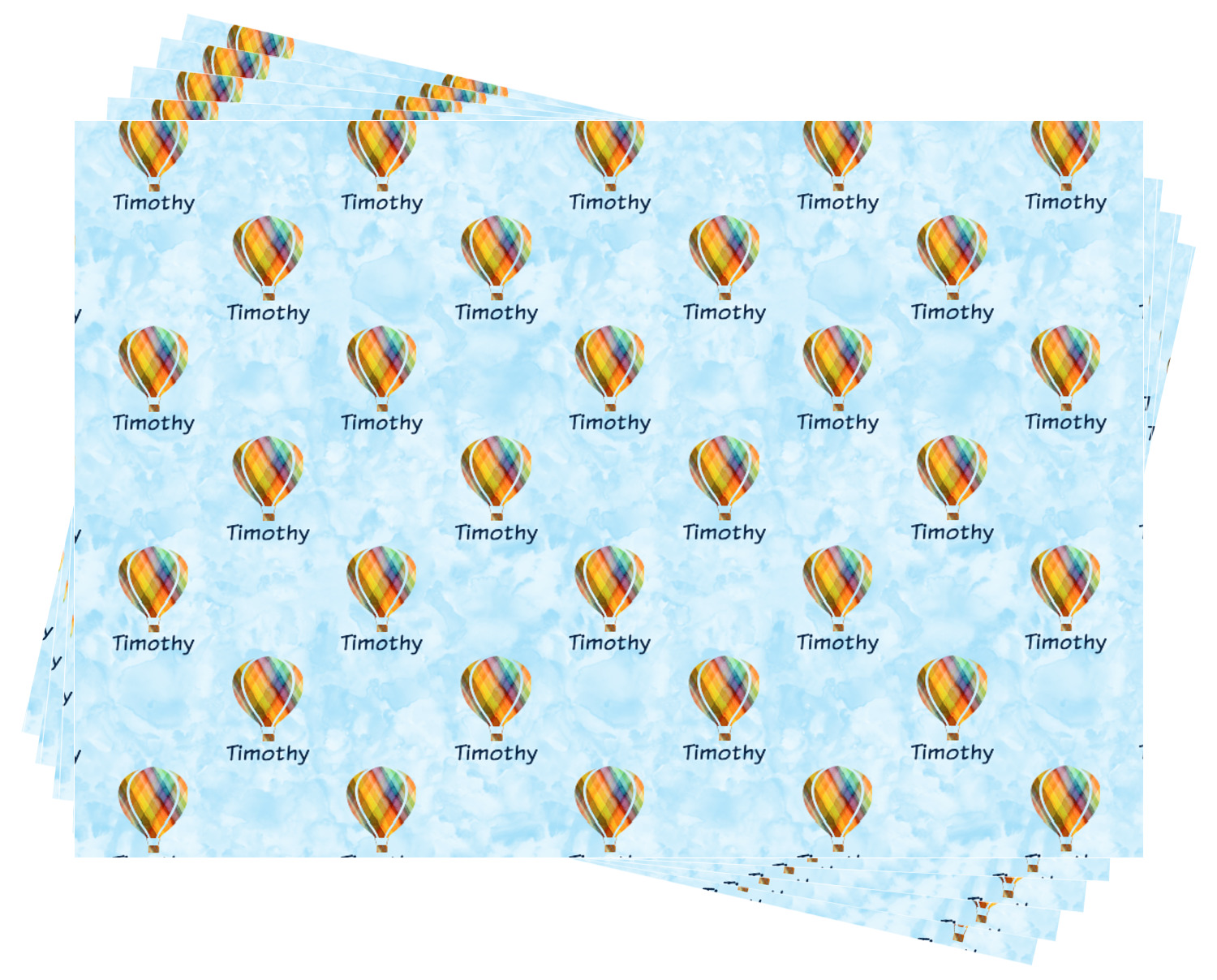 We chose to personalize it with a decorative square label and our graphics & text style. We chose to use a hot air balloon as our graphic from our transportation collection and used a name for personalization. We chose baby blue for our color to coordinate with the sky.
