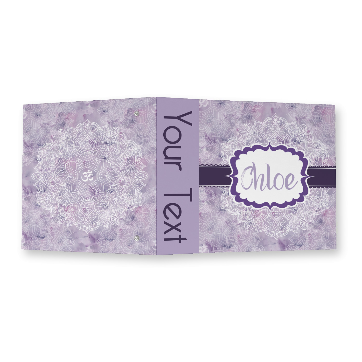Made from a sturdy cardboard base with a full high quality canvas textured vinyl wrap with the design of your choice. Unlike our standard 3-ring binder with the full wrap design your artwork wraps from the front and back and into the inside of the binder.
