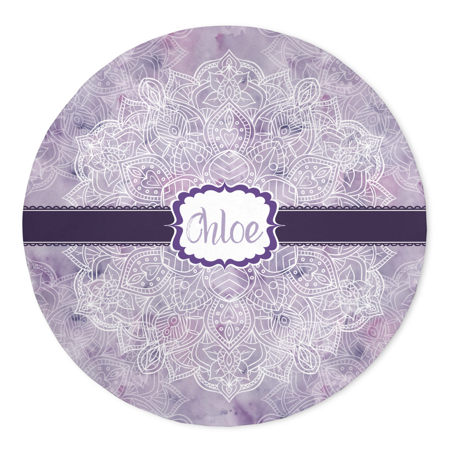 Our custom round area rugs and rectangular area rugs are both velvety soft and smooth, with a short pile, beautiful sewn corners and edges on the poly chenille face. We recommend adding an anti-slip mat under your round area rug to prevent it from sliding when under foot when placed on hard or smooth surfaces.