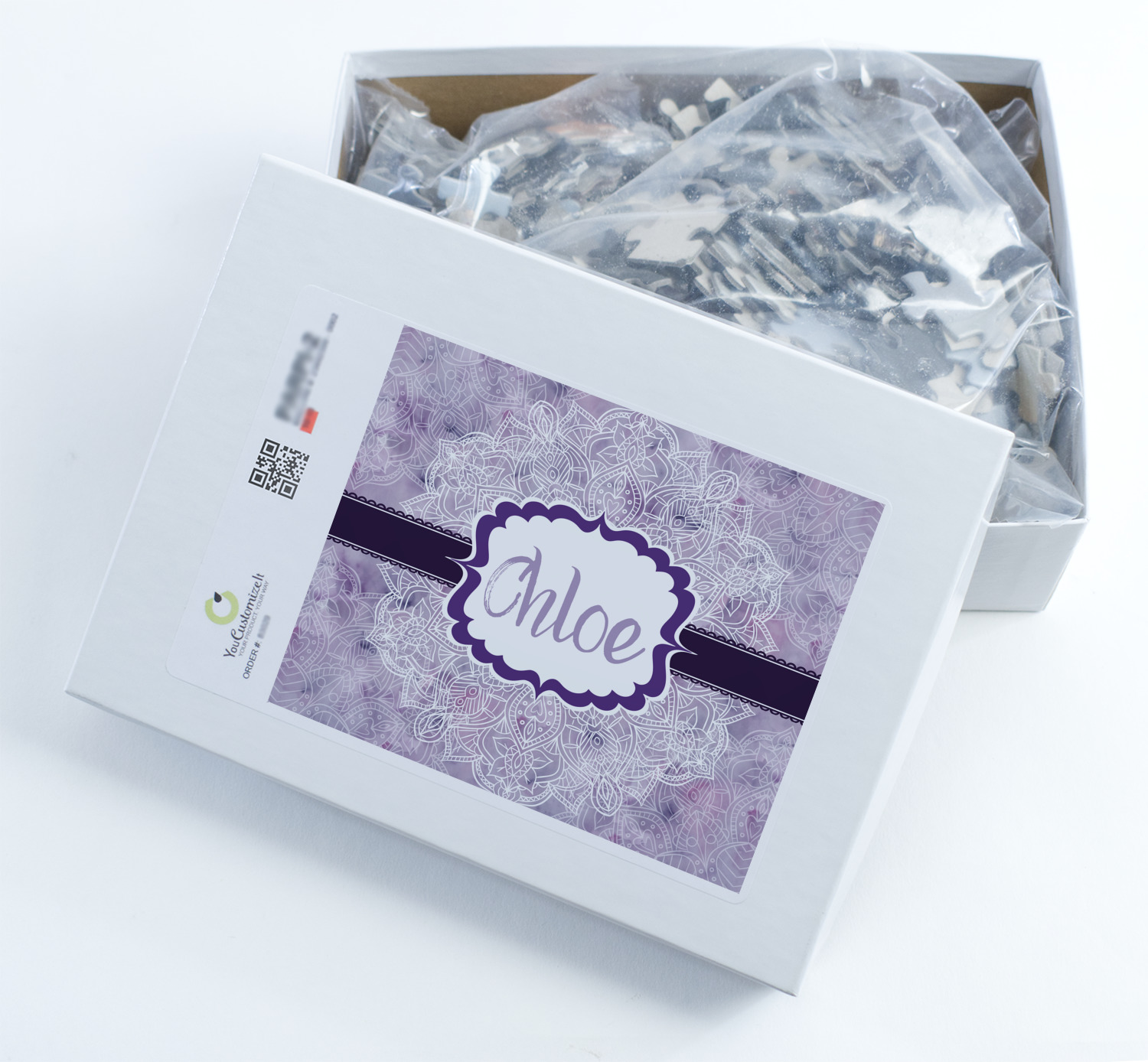 We print our puzzles on thick white chipboard in vibrant colors, then laminate the chipboard and die cut your puzzle. Your jigsaw puzzle is shipped to you in a box with the image of the puzzle on the box.