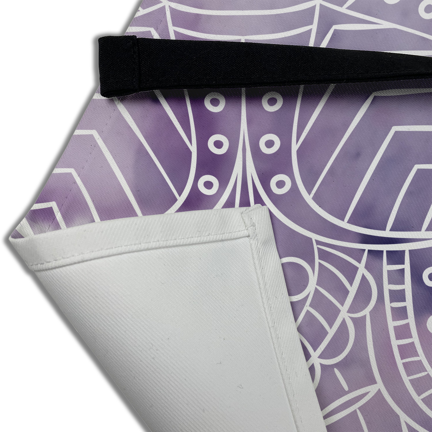 Our aprons are a lightweight yet durable polyester material. We offer two styles of aprons, one without pockets and one with two pockets adorning the center near the waistline. Each apron is one size* and comes with adjustable straps for both the neckline and waist. We print your custom design on the front of the apron to display your creativity!