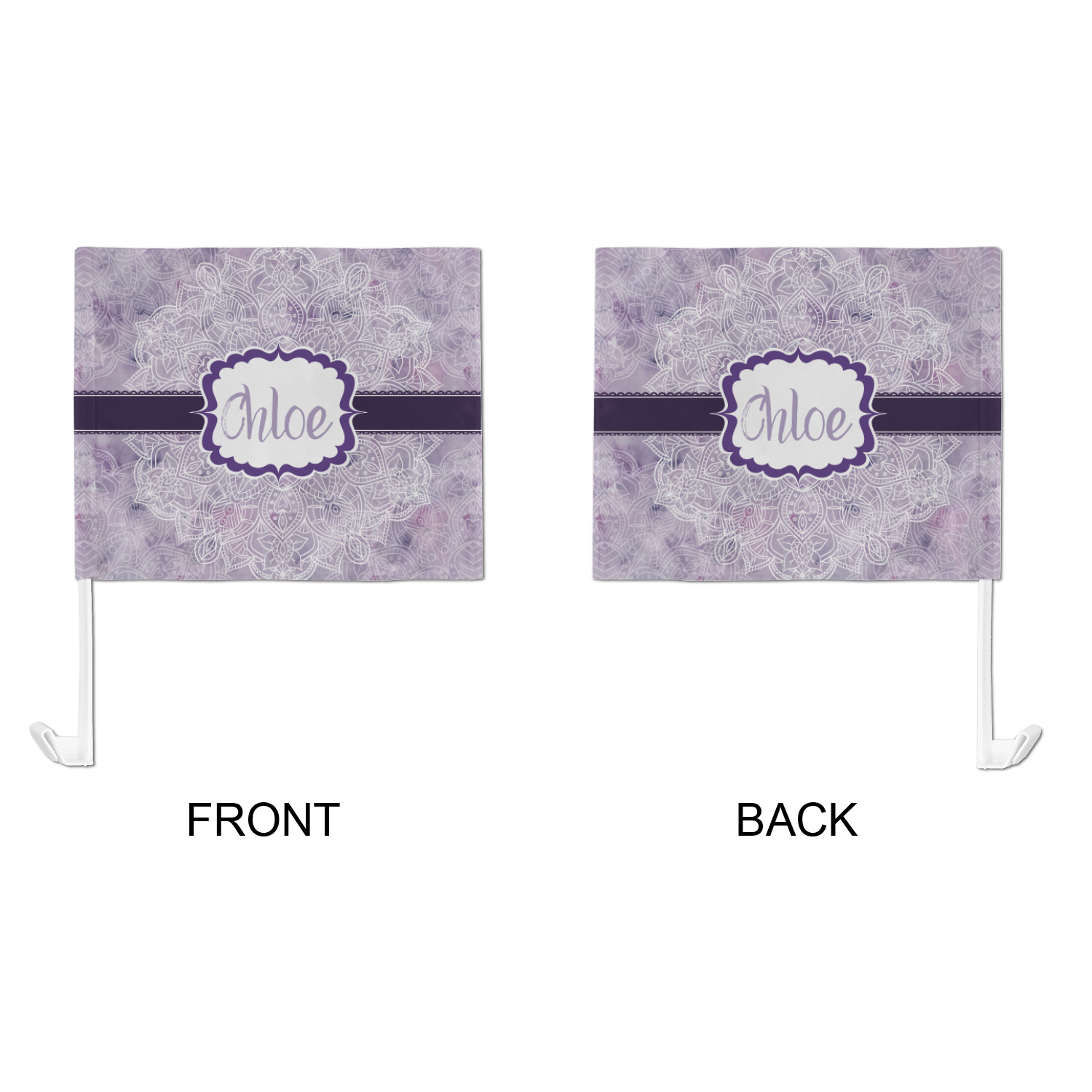 Our personalized flags are made from a durable, yet lightweight cloth that will proudly bear your logo or design of choice, while withstanding the outside elements. We have two size options - 8" x 11" and 11" x 15". Both come with a flag pole which includes a clip that secures the pole to the side window, whether it is rolled up or down. The flags are printed on both sides to display your design from all directions.
