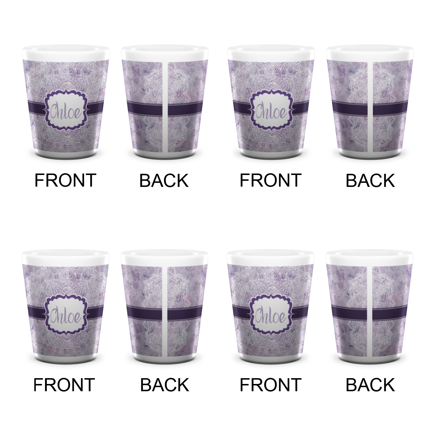 Made from ceramic these shot glasses are printed in full color with the design of your choice. These are a standard 1.5oz size and stand 2.25" tall. Available in a full white ceramic or a two-tone with a black color inside the shot glass. Buy a single or a set of 4, all of which can be designed separately to get you just what you want and need.