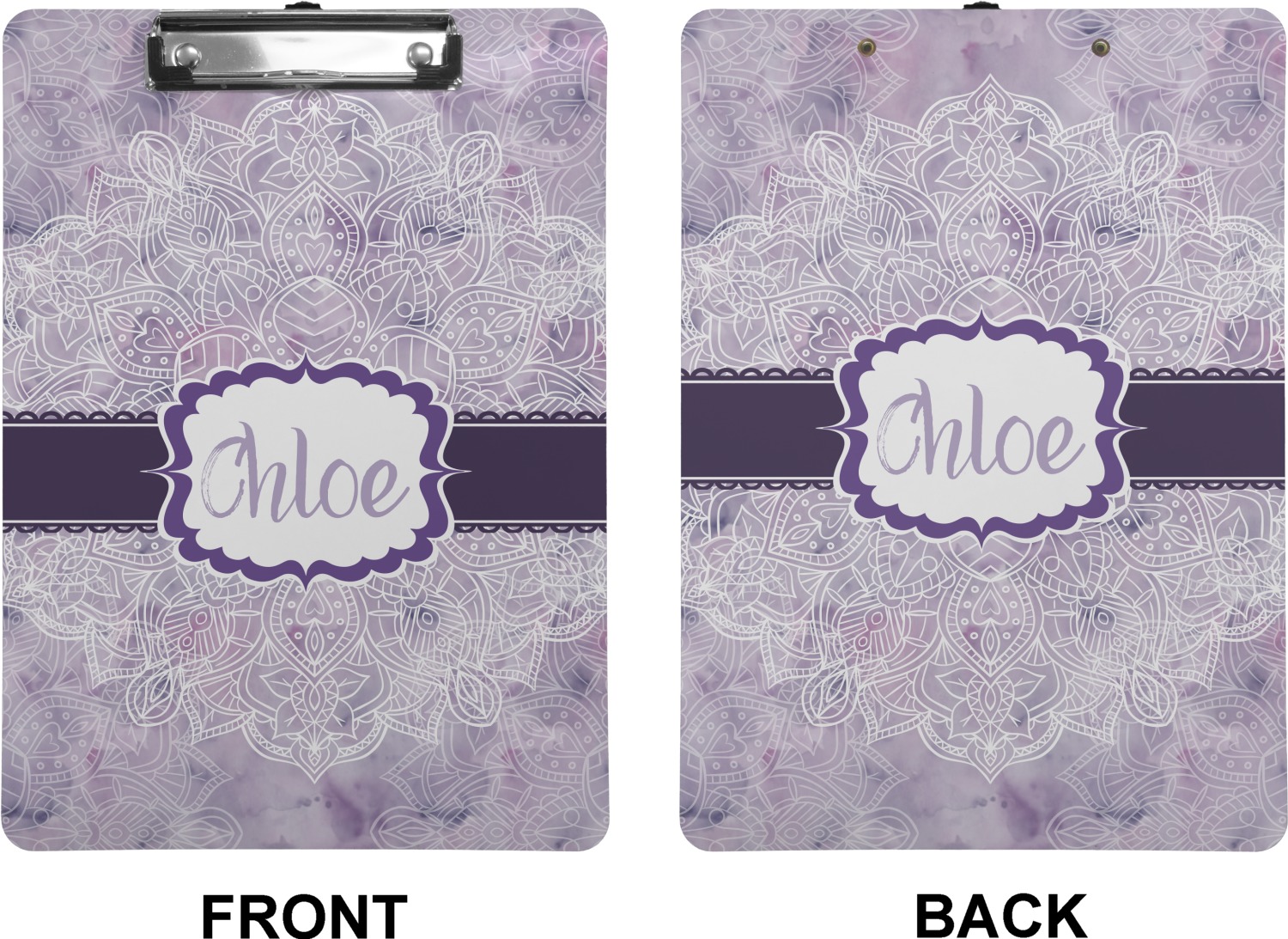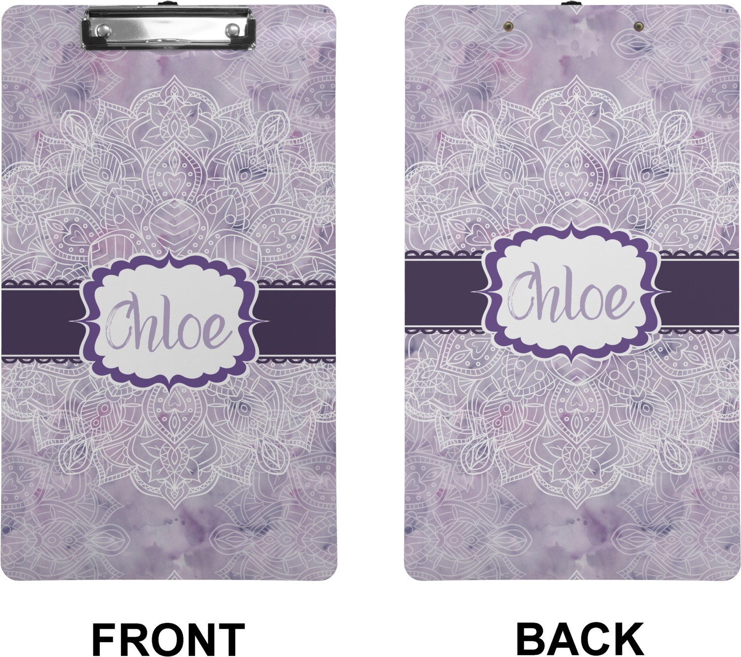 These custom clipboards are made from a strong hardboard and are coated with a glossy finish that accentuates the colors of your design. Alongside a retractable hook at its top, these decorative clipboards also feature sturdy clips to secure several sheets of paper. We sell these clipboards in two separate sizes. Our letter size measures at 12.5" L x 9" W, while our legal clipboard is approximately 15.5" L x 9" W. On both models, your personalization is printed on both sides of this clipboard and can be customized individually.