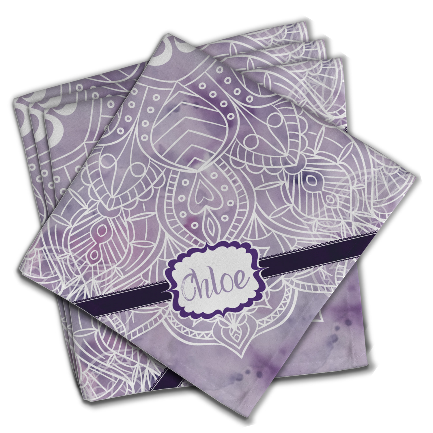 Each customizable cloth napkin is a polyester material guaranteed for long-term use. Since our napkins are cloth, it serves as a great reusable and eco-friendly dining decor. We sell personalized napkins individually or as a set of 4! Print your own unique design on all four napkins, or create four individual designs for each napkin! We offer two different napkin sizes - Cocktail napkins (approx. 10 x 10) and Dinner napkins (approx. 20 x 20). We print your design on one side, perfect for displaying your custom designed lunch napkins in any fold or table setting!