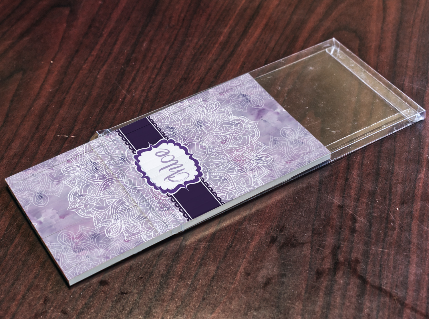 The background contains an elegant mandala with the om symbol sitting peacefully in the middle. The watercolor background behind the mandala gives the design a cool feeling. The graphic chosen repeats a similar pattern to the mandala on the figure doing yoga for the graphic and wide format. The Om symbol is used as the last graphic element.