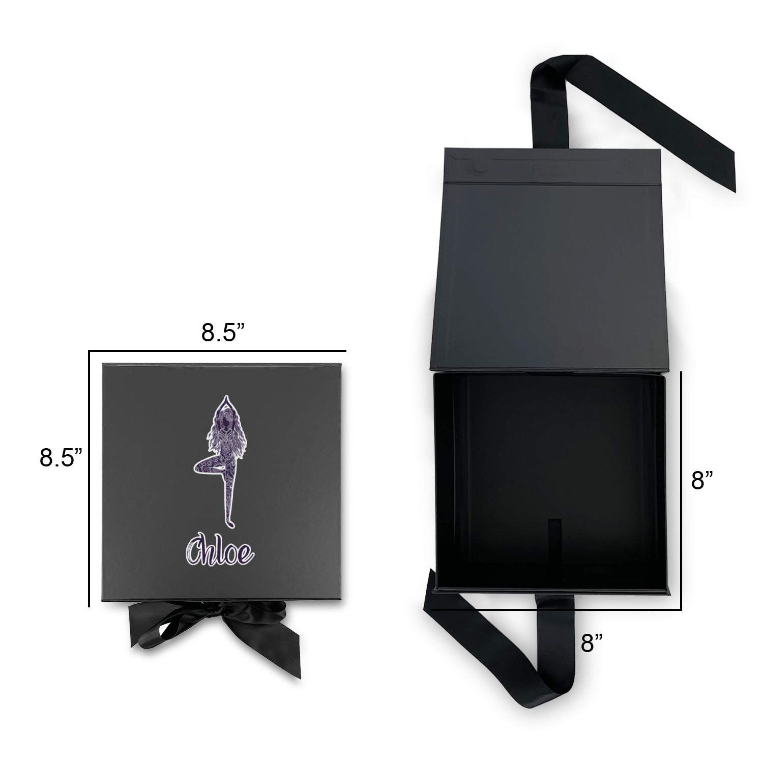 Design your own using our design library and we will print your artwork onto the lid of the gift box. When the box is closed the ribbons can be tied to secure the lid and add to the elegant look of these gift boxes.