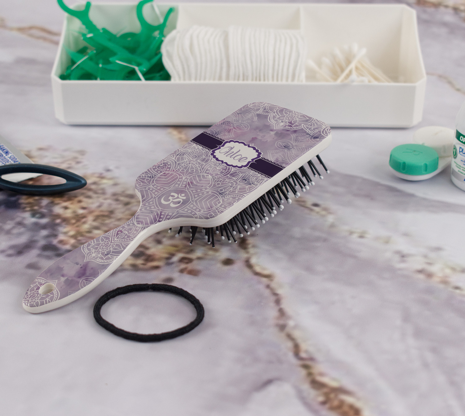 Our paddle style customizable hair brushes are perfect for all hair types- straight, curly, wavy, long, short, thick or textured.