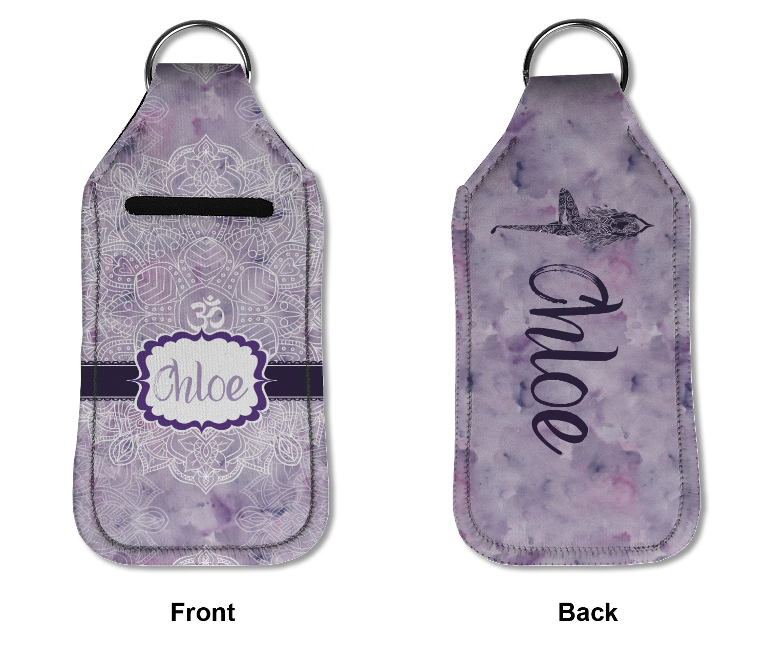 Each hand sanitizer holder comes with its own empty travel-sized, refillable hand sanitizer sure to fit snug in your customized sanitizer case! Our hand sanitizer cases are a durable, yet soft neoprene material sure to last any daily activities or travel agenda. Customize and personalize a hand sanitizer bottle holder with one of our two sizes - small (4.25" x 2.25") or large (5.5" x 2.5"). Each travel sanitizer holder comes with a keyring for attachment on bags, keys, or more!