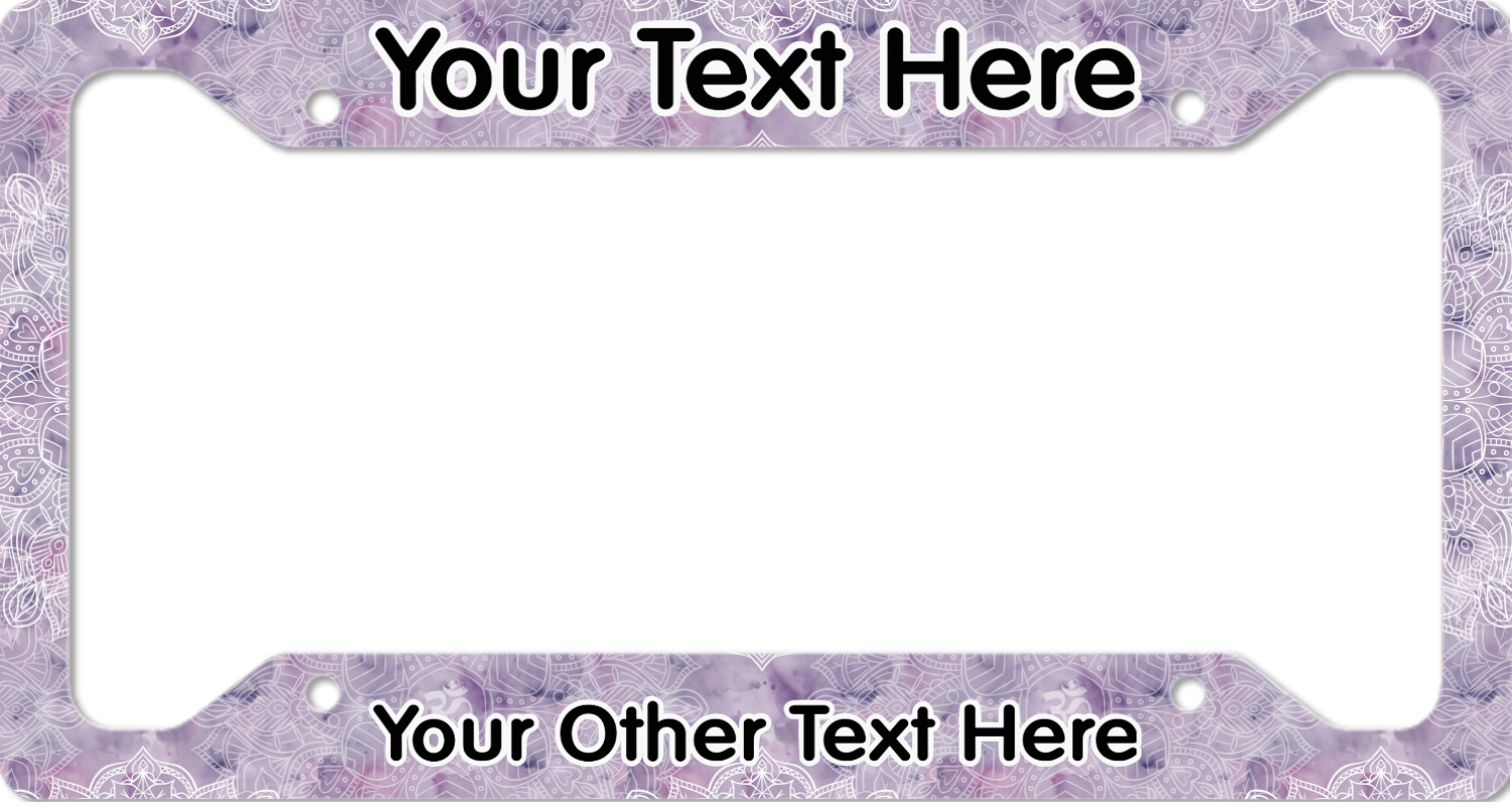 Each customizable license plate frame is made from a fine, yet sturdy aluminum material that measures approximately 6.5 x 12.15 inches, accommodating most standard license plates. The thickness allows the license plate frame to adhere completely to your license plate for a seamless look. We carry 3 styles of license plate frames to customize - Style A has texts on top and bottom, Style B offers texts on top and bottom as well as a full fill bottom border, and Style C offers text at the bottom only. The personalized license plate frame comes with four mounting holes for easy installation! We print each custom design across the frame with a glossy finish.
