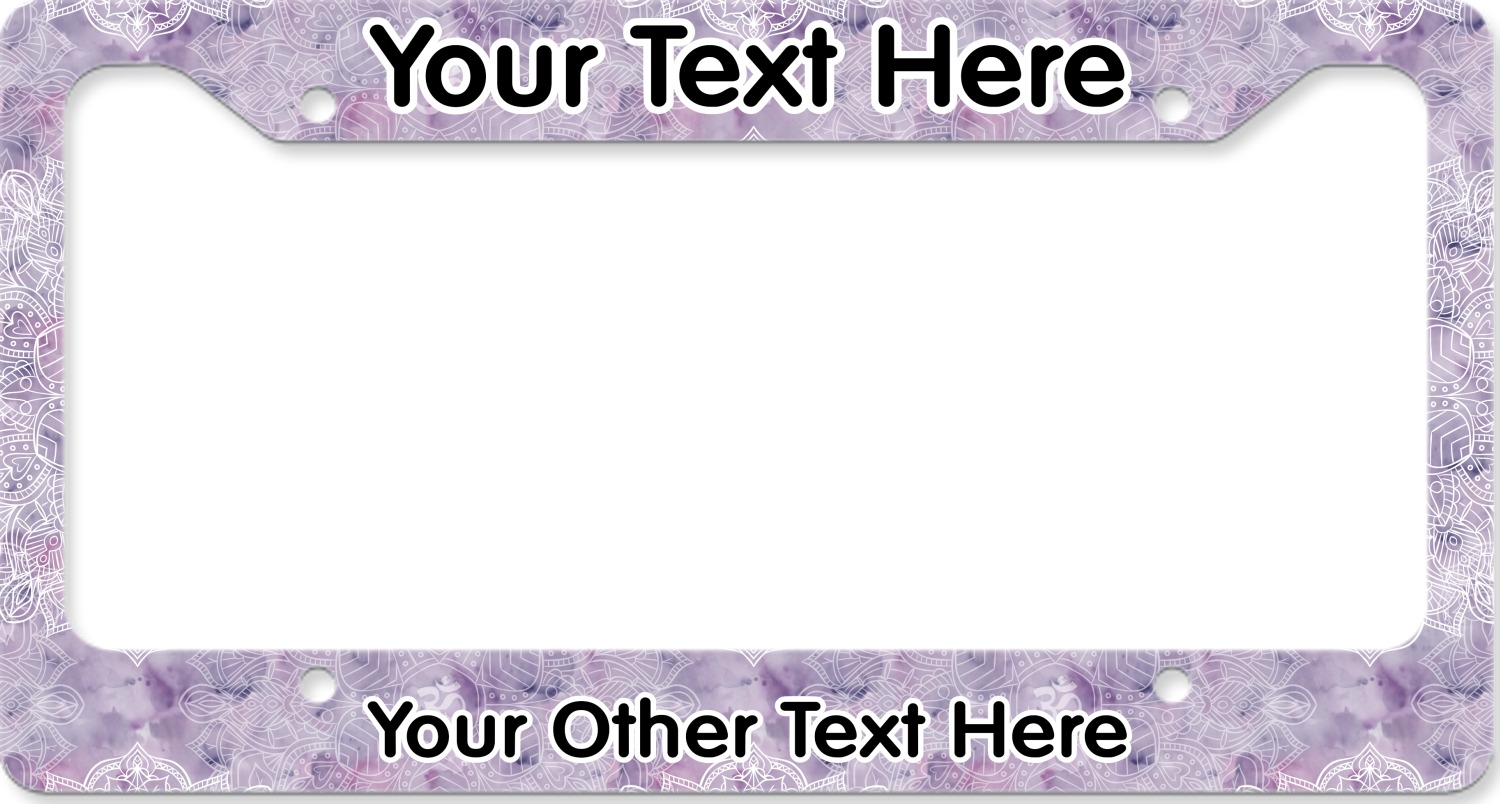 Each customizable license plate frame is made from a fine, yet sturdy aluminum material that measures approximately 6.5 x 12.15 inches, accommodating most standard license plates. The thickness allows the license plate frame to adhere completely to your license plate for a seamless look. We carry 3 styles of license plate frames to customize - Style A has texts on top and bottom, Style B offers texts on top and bottom as well as a full fill bottom border, and Style C offers text at the bottom only. The personalized license plate frame comes with four mounting holes for easy installation! We print each custom design across the frame with a glossy finish.