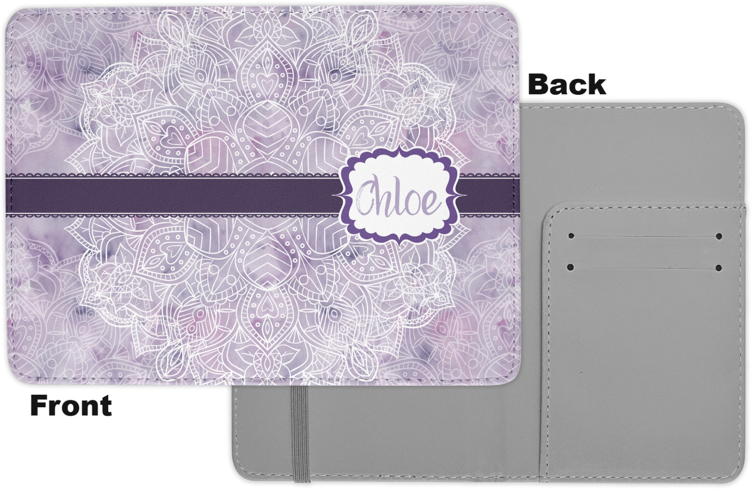 The passport holder has a beautiful inside made of faux leather, while the outside is a smooth slick vinyl like material printed with your personal design.