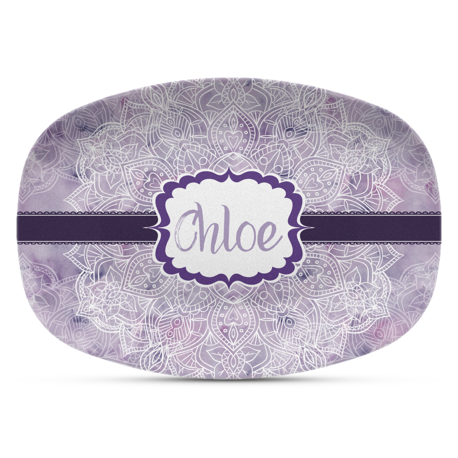 These serving platters are made from a composite, thermo-set, polymer plastic that gives it the versatility, durability, and weight of a melamine platter, without any of the downsides of melamine. These personalized platters, can withstand temperatures up to 250 degrees Fahrenheit, for up to 60 minutes. No harmful chemicals, such as BPA, formaldehyde, and DEHPs were used in the manufacturing of this product. This large serving platter measures at 14" x 10.25", and is spacious enough to hold any of your appetizers or bite-sized desserts. The platter exhibits your personalization across the entirety of its front.