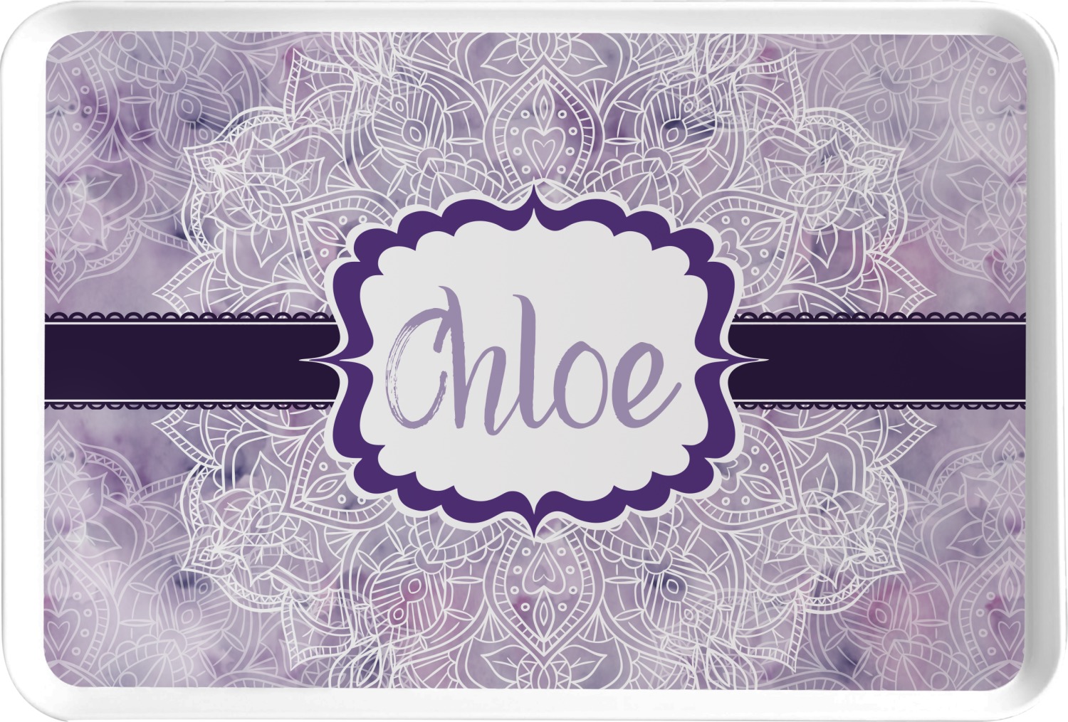 Made from a heavy melamine, these decorative trays are break resistant and are BPA free. At 14" x 9.25", these serving dishes are spacious enough to accommodate several drinks, bowls, or more. The tray features ridges underneath that allow for a sturdy stance upon any table or counter-top. We display your customization at the bottom of the tray's interior, while the remaining sides of the tray are a chic white.