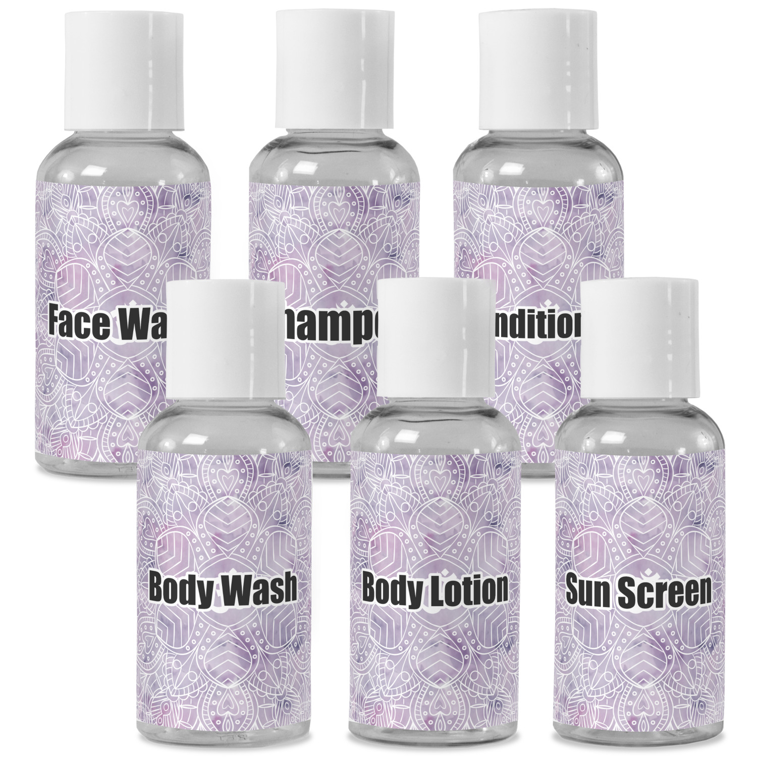 These soap and lotion travel bottles are the perfect place to start. Each set comes with 6 clear plastic bottles with white pop top lids. The bottles are cylindrical and can hold approximately 2.7oz. Perfect for plane travel!