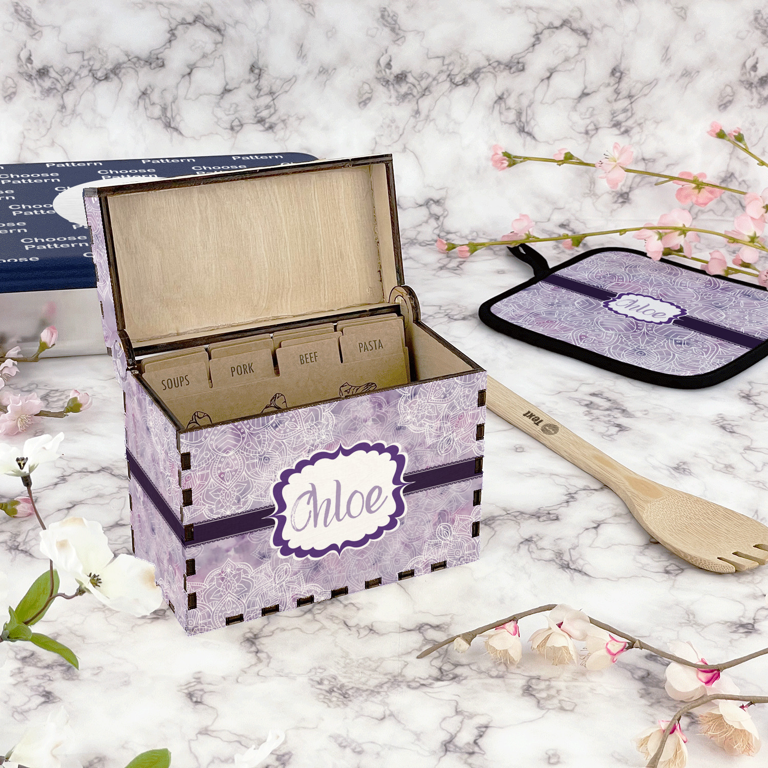 For a classic look for your kitchen counter to hold all of your family heirloom recipes look no further than this full color printed wood recipe box. These recipe boxes are sure to add a nice custom touch to your kitchen and allow you to proudly display your treasured family recipes in a beautiful custom recipe box.