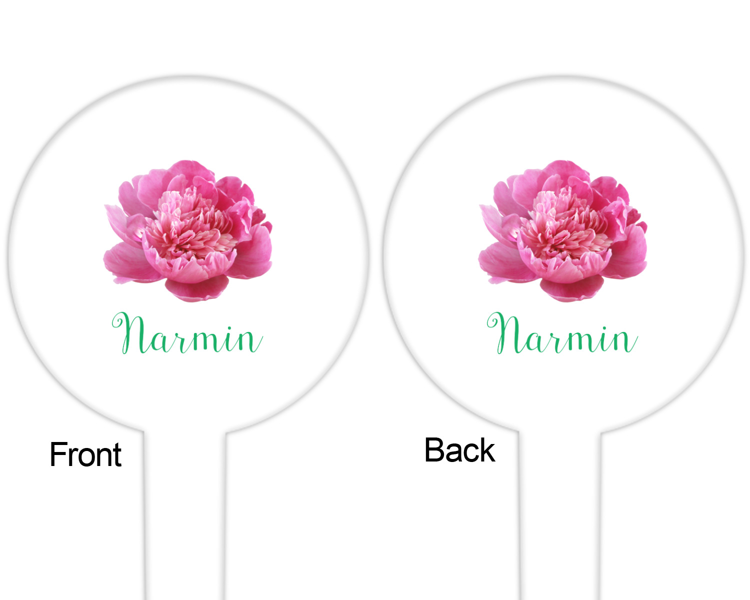 The round disc on these food & drink picks can be customized and personalized to your specifications. Your image will be printed in full color on one side or both sides. You can use the same image on both sides or use two different images.