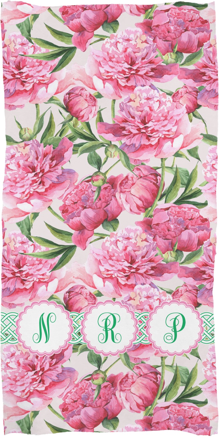 These customized bath towels are slightly larger than your standard towel and are the ideal size for wrapping around your body. They measure approximately 60" x 30". Your customization is displayed across the entire front face of the towel, while the back is white.