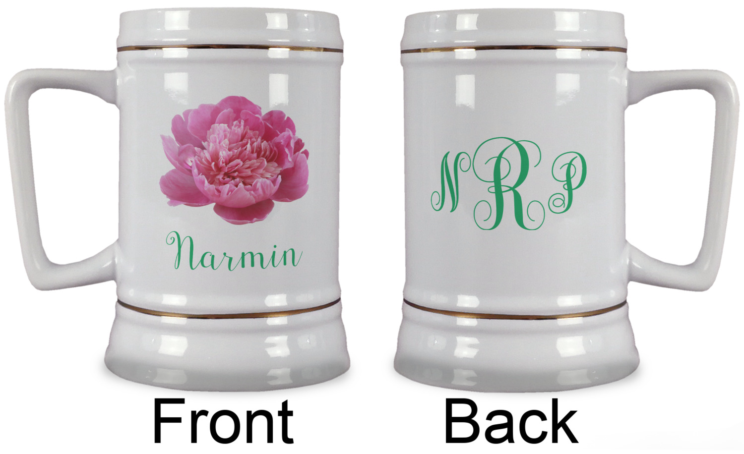 We don't have minimum order quantities on these beer steins. Each beer stein can be customized and personalized in full color on the front and the back. And each stein can be customized for each person in your group.