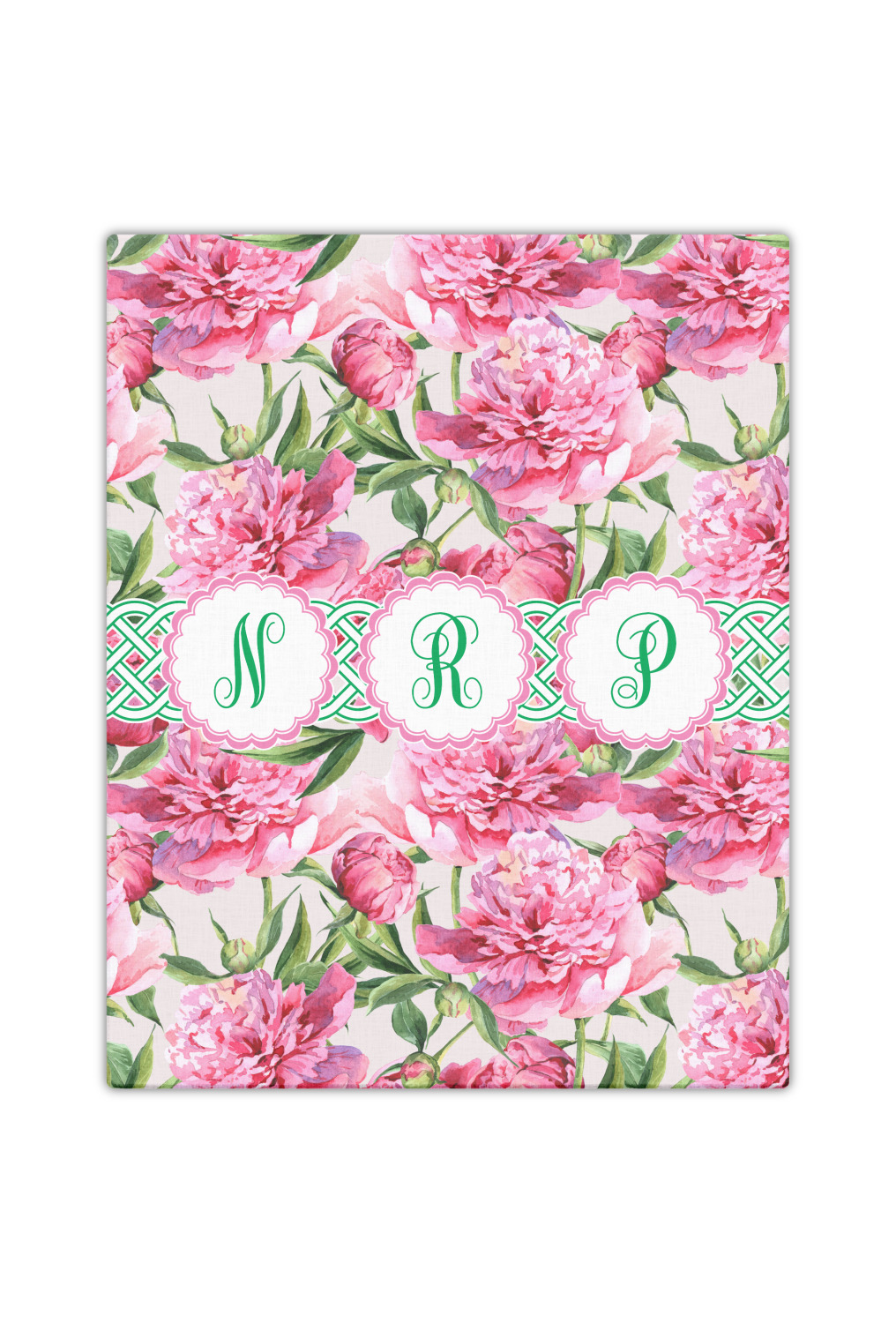 We chose to personalize it with Celtic ribbon and triple scallop labels with initials in each one of the labels. The coordinating design is also stunning with stripes of pink on the bottom.