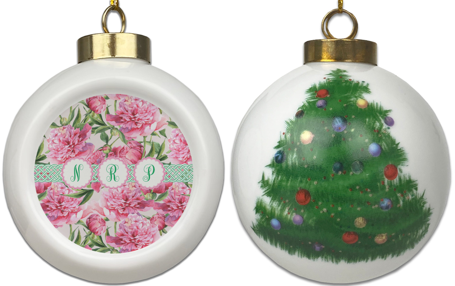 Our Christmas ornaments are a unique ceramic ball shape with a twist as it has a flat face to display your custom design! Select from one of our two design types - Christmas Tree or Poinsettia Garland - to adorn the curved back of your personal design. Each ornament measures 3H x 2.5W x 2D accompanied with a gold string accent for finishing touches to hang on your beautiful Christmas tree!